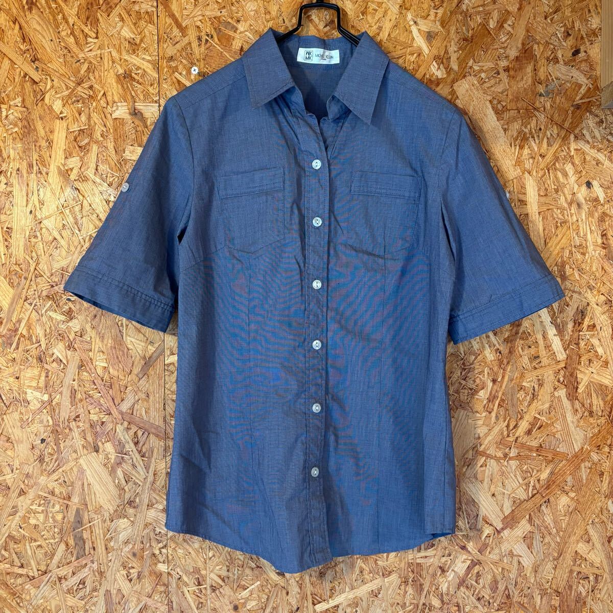 ほぼ未使用 MICHEL KLEIN 半袖シャツ ブルー 袖調節可能 トップス レディース 4671