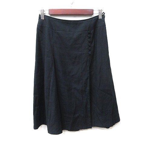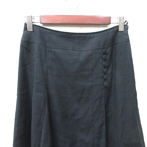 コムサデモード COMME CA DU MODE フレアスカート ミモレ ロング 麻混 リネン混 9 M 黒 ブラック /YI レディース