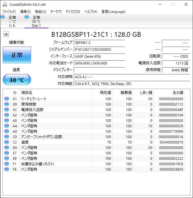 K70708181 B128GSBP11-21C1 M.2 SATA 128GB SSD 1点 使用時間:8466【中古動作品】071031