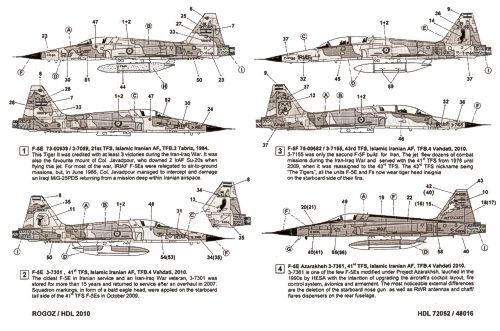 イラン空軍のF-5E/F タイガーII、計4種類 のマーキングセットになります。