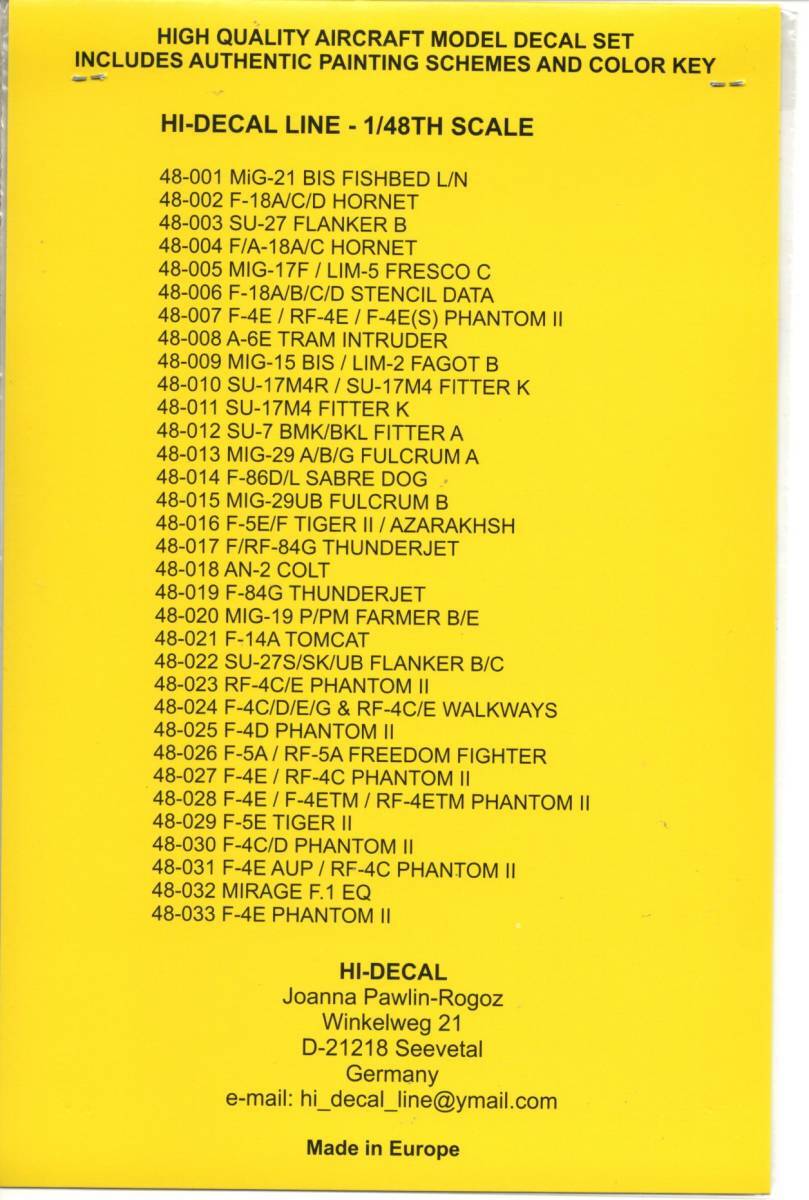 ハイデカールはドイツのメーカーです。(プリントはヨーロッパ製)