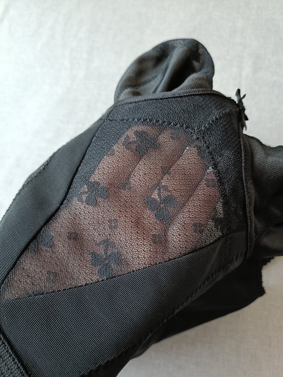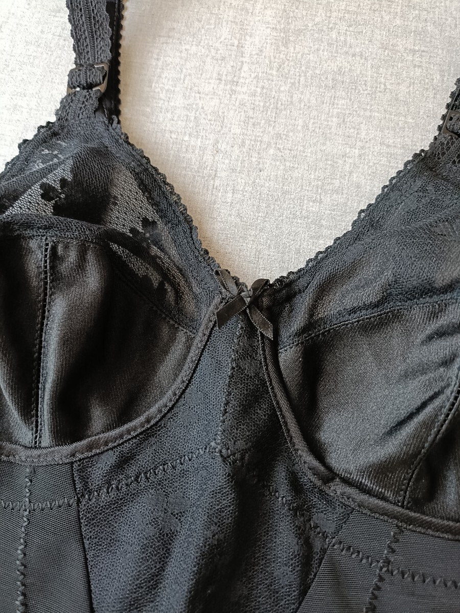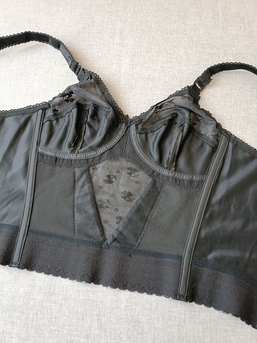 ボーン入りで、生地は柔らかな薄めの程よく伸縮する生地です。(カップワイヤーは入っていません)