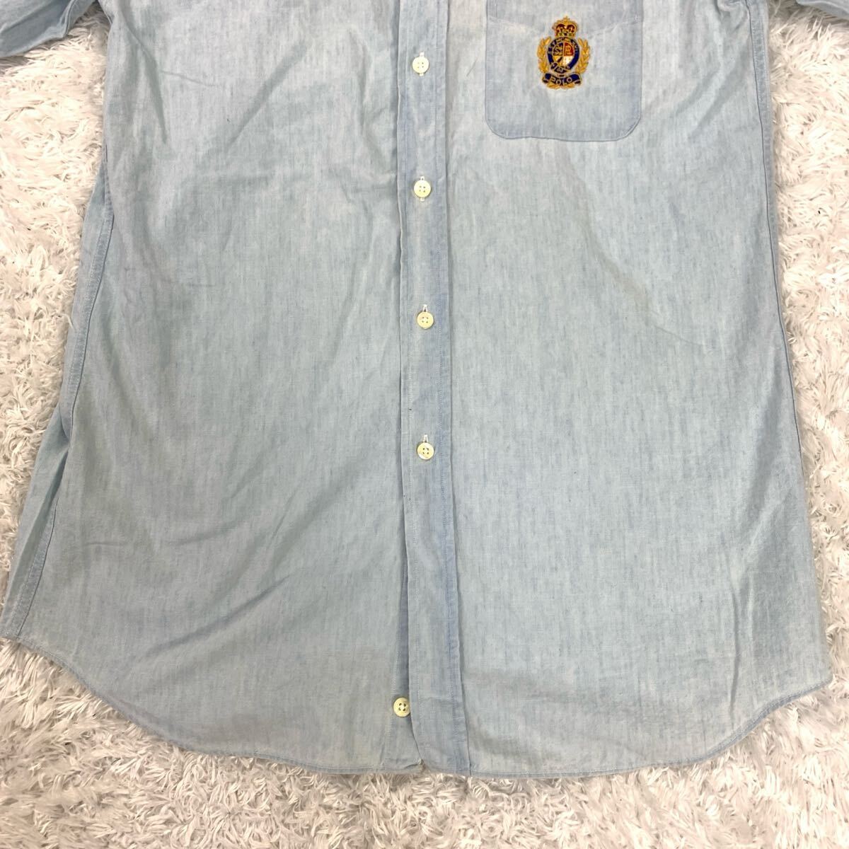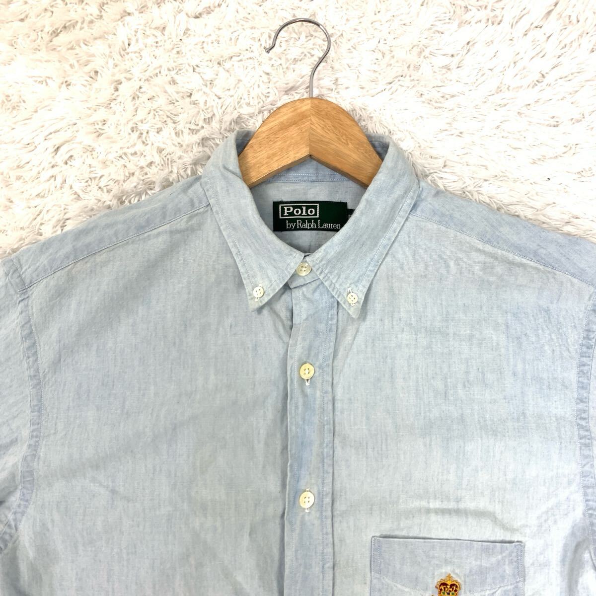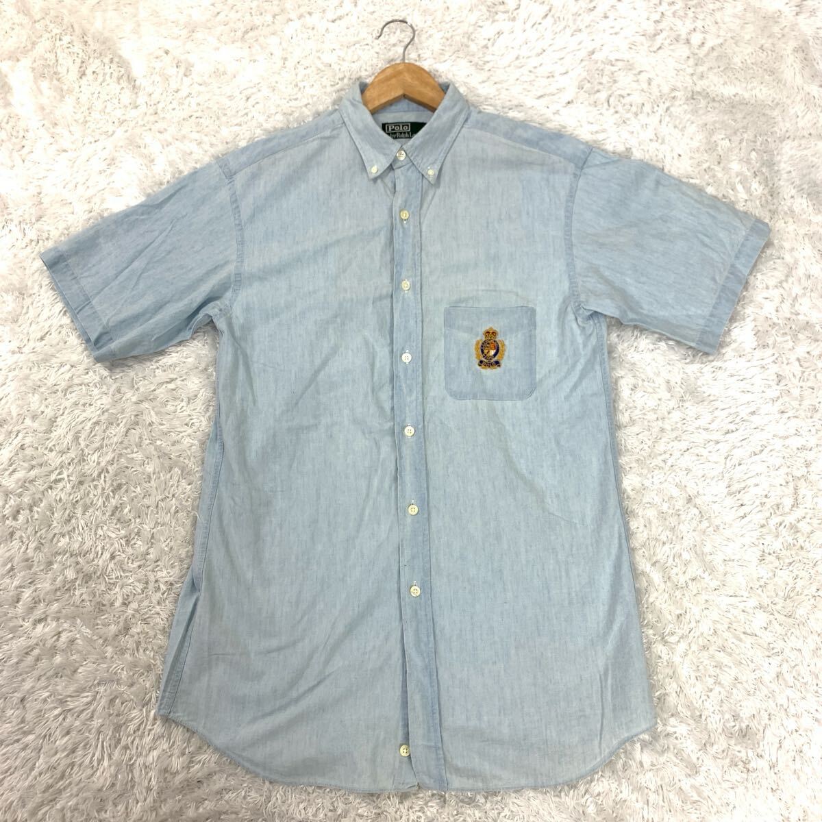 Polo by Ralph Lauren ポロバイラルフローレン 半袖シャツ 半袖トップス ボタンダウンシャツ 刺繍 ライトブルー コットン 170 YA9750