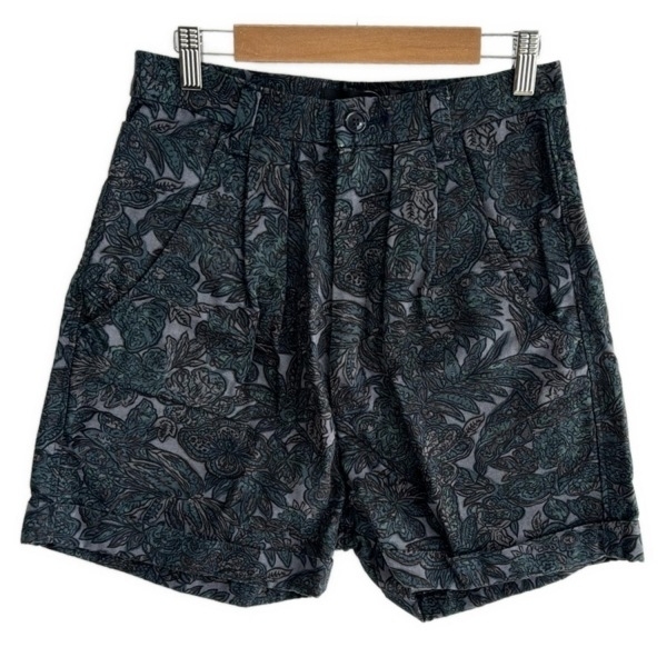ズッカ ZUCCA ハーフパンツ サイズM - グレー×ブルーグリーン×マルチ レディース ボタニカル柄 美品 ボトムス