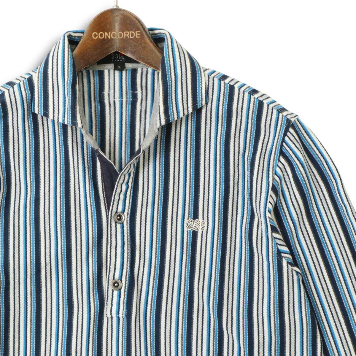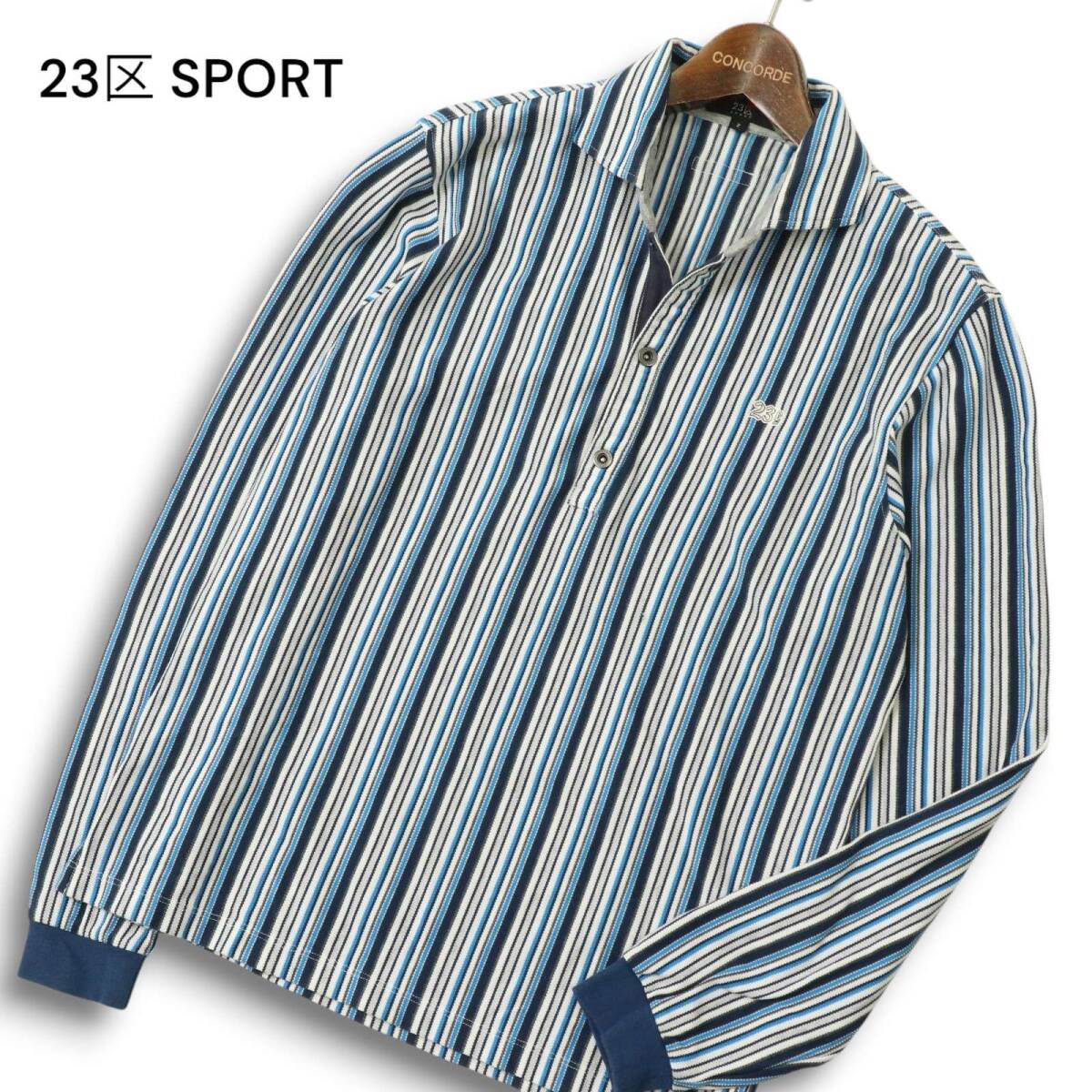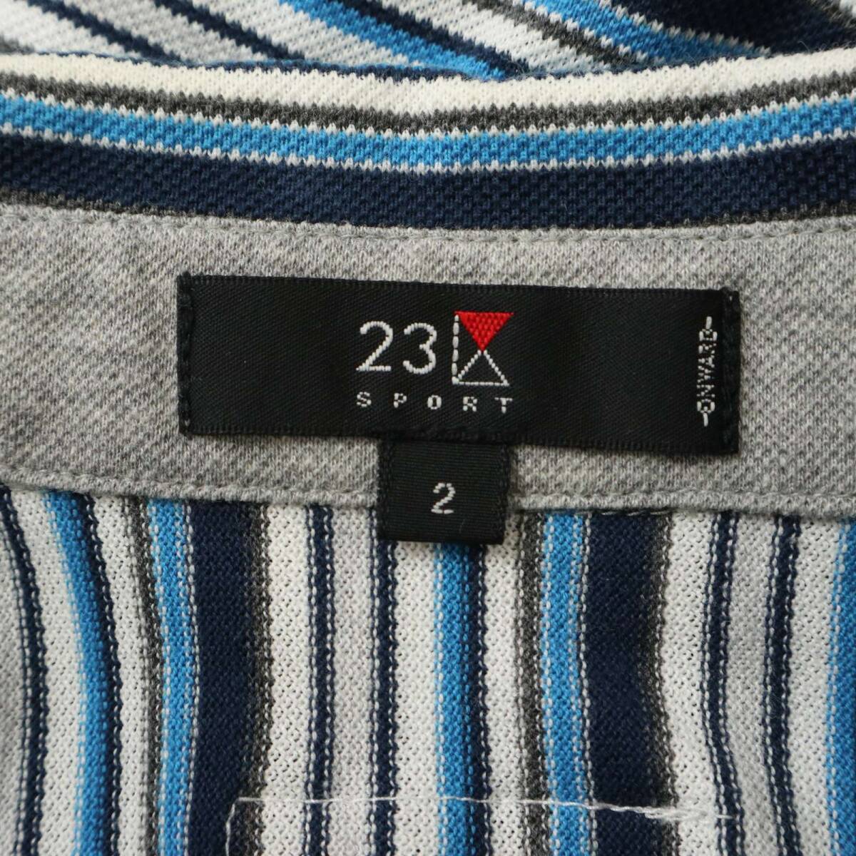 23区 SPORT スポーツ 通年 ロゴ★ 長袖 ストライプ ポロシャツ Sz.2 メンズ ゴルフ