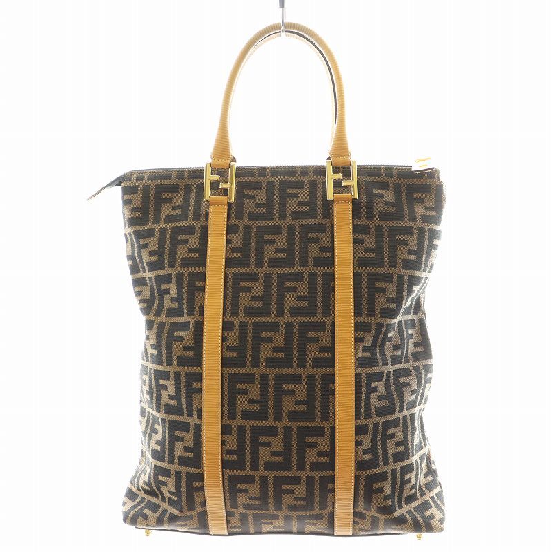 フェンディ FENDI ズッカ柄 トートバッグ ハンドバッグ レザー キャンバス 茶 ブラウン /AN1 ■OH レディース