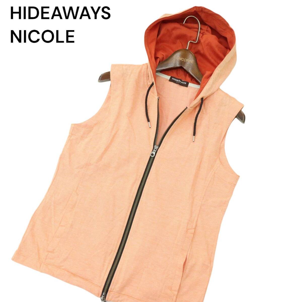 HIDEAWAYS NICOLE ハイダウェイ ニコル 通年 細ボーダー★ ダブルジップ フーディー ノースリーブ パーカー Sz.46 メンズ