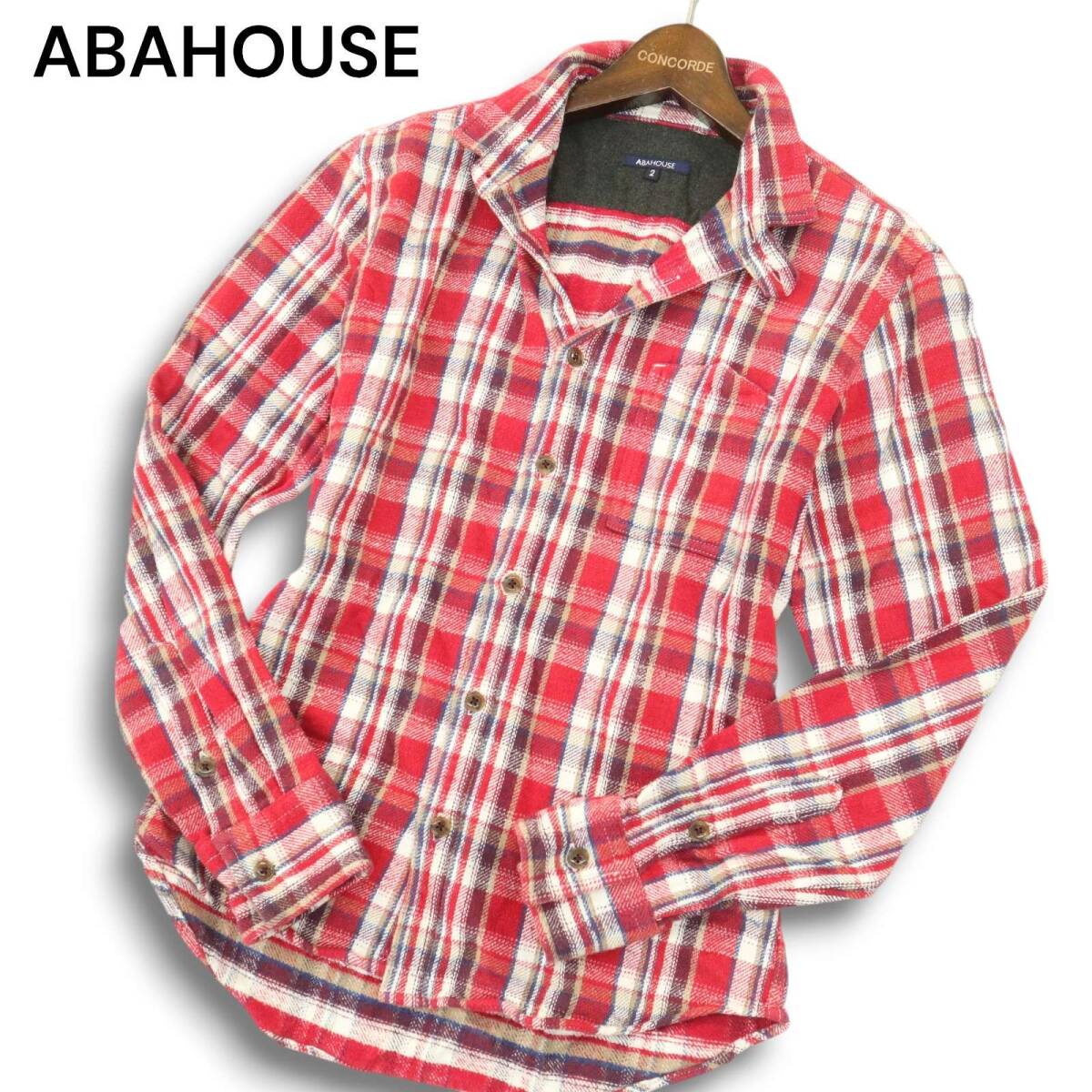 ABAHOUSE アバハウス 秋冬★ ヘビー フランネル チェック シャツ 長袖 厚手 Sz.2 メンズ