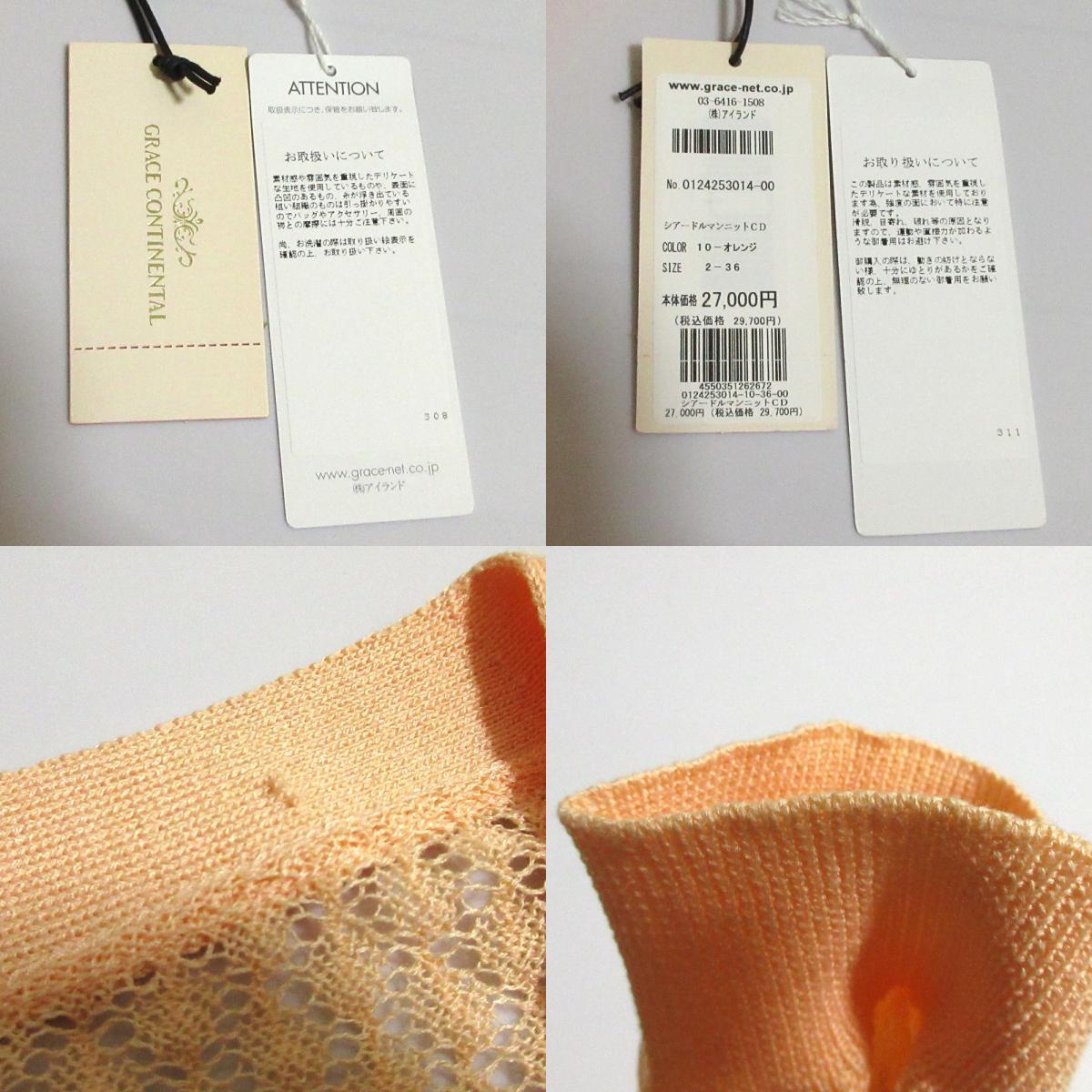 良品 24SS GRACE CONTINENTAL グレースコンチネンタル シアードルマンニットカーディガン 0124253014 サイズ36 オレンジ