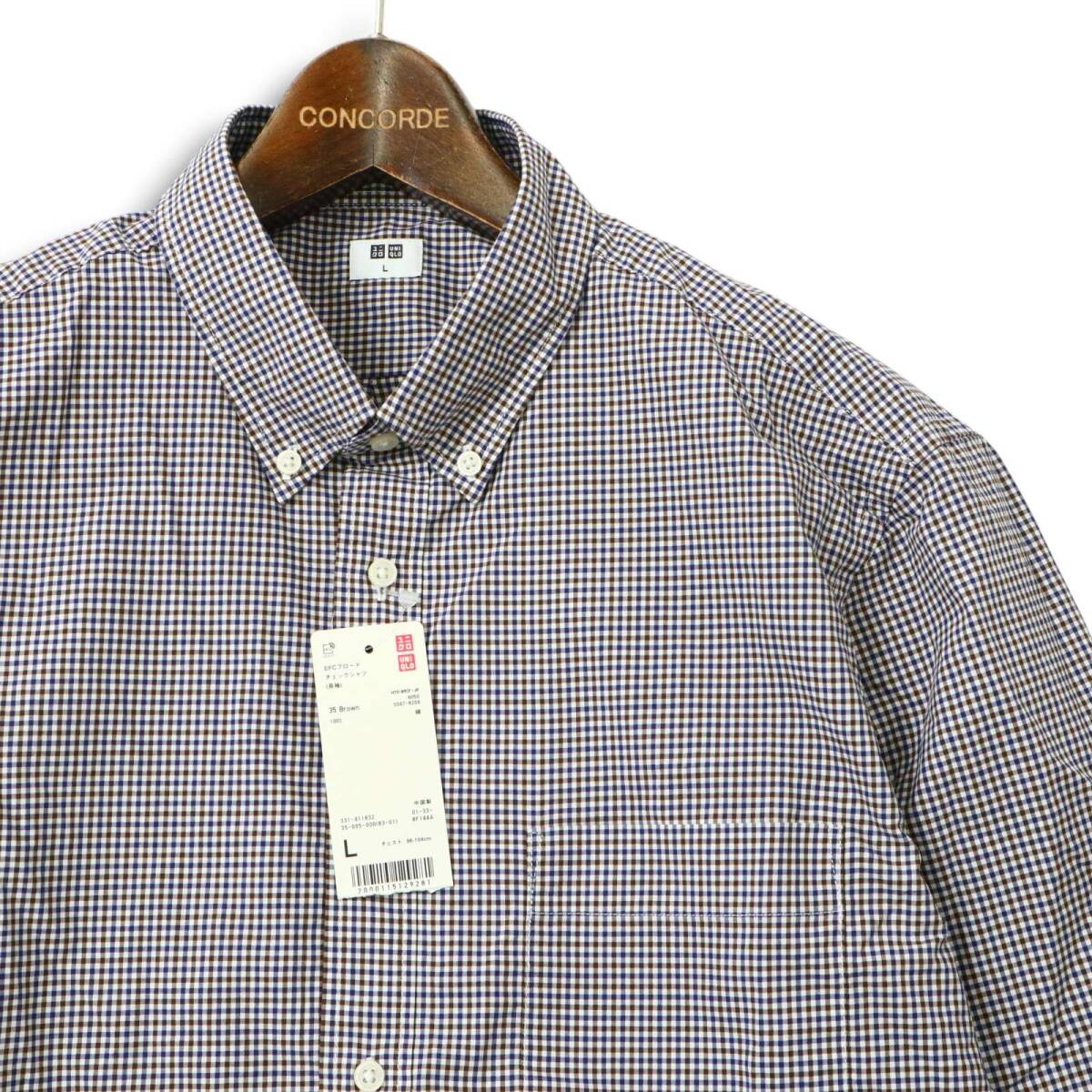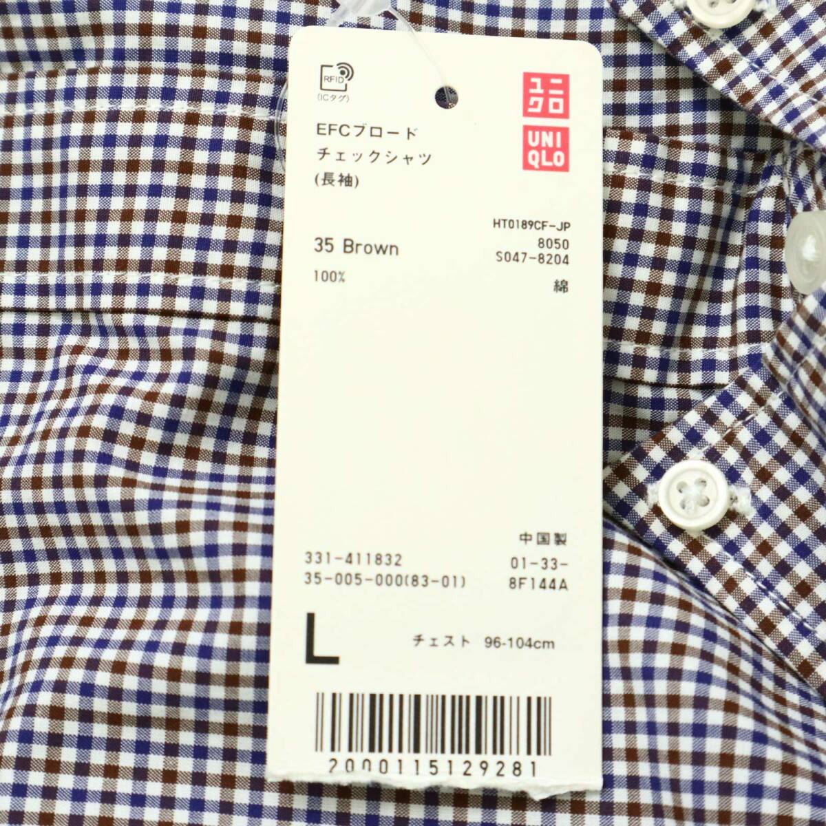 【新品 未使用】 UNIQLO ユニクロ 通年★ EFC ブロード 長袖 ギンガム チェック ボタンダウン シャツ Sz.L メンズ