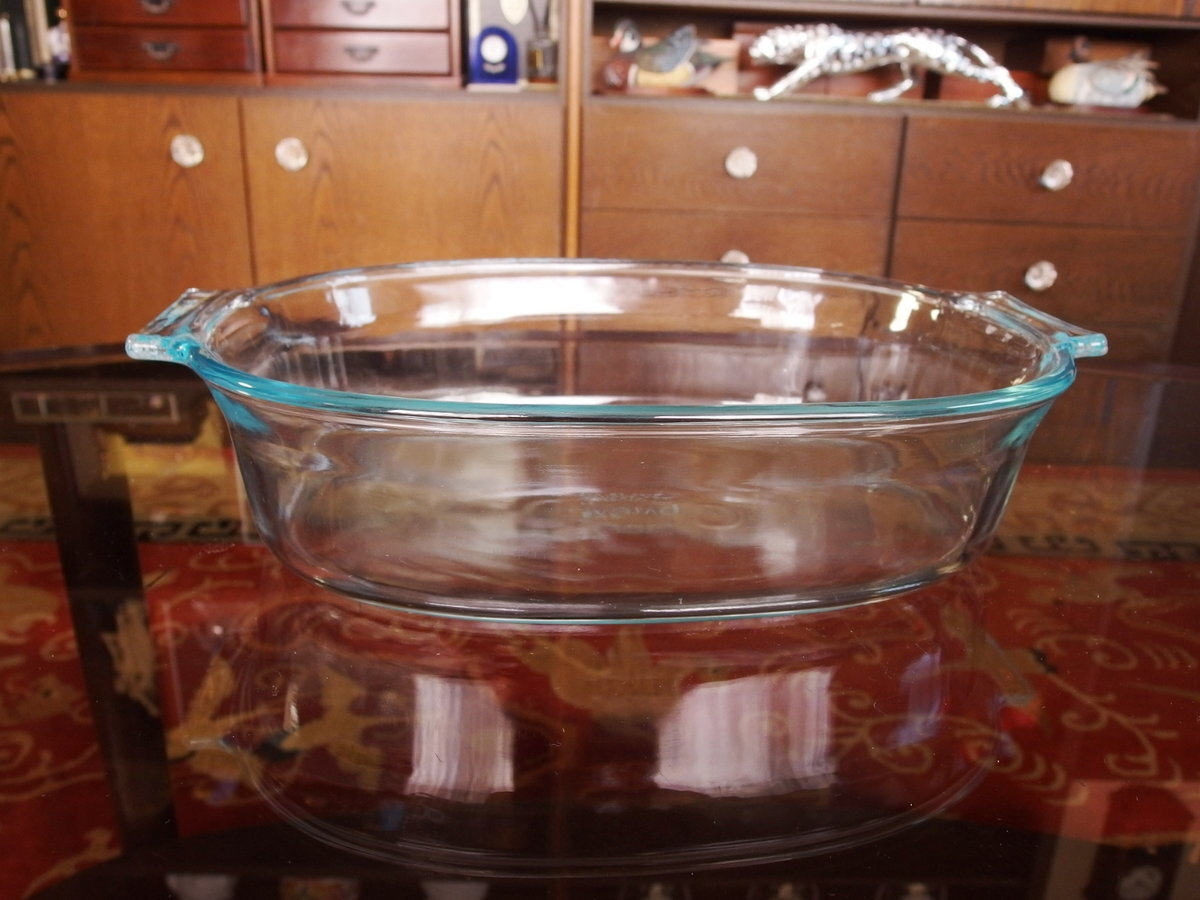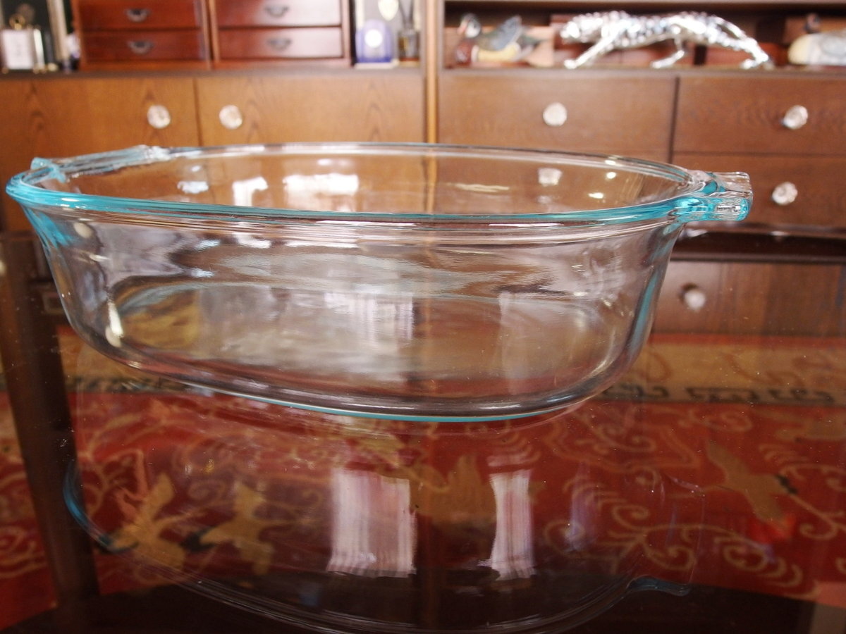 PYREX パイレックス 大型【 702 21 2L NO RANGETPO NO BROILER MADE IN USA 】スクエア・オーブン・ディッシュ 2L 縁.ブルー 大型