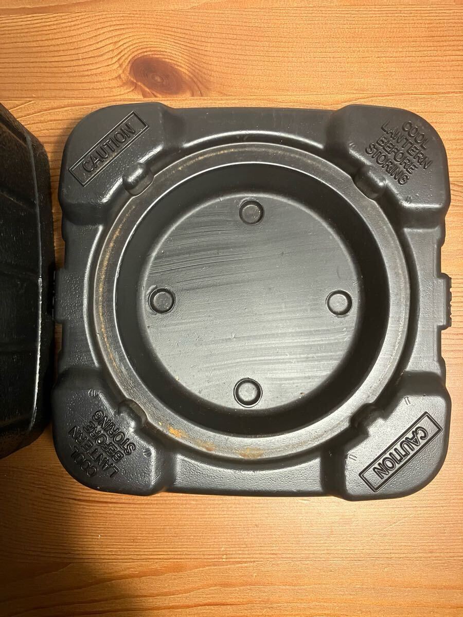 コールマンのハードランタンケース。カラーはブラック、もみの木マークの93年製です。200系、286,288等に使用可能かと思います。使用回数は少なく、年式の割には美品かと思いますが、気になさる方の入札はご遠慮下さい。