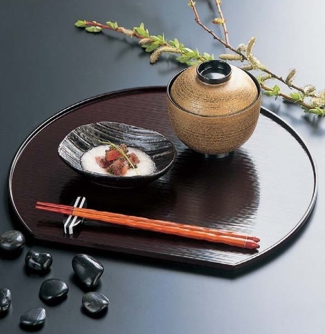 ☆業務用漆器半月盆黒渕天朱7寸(約221X198mm)100枚越前塗日本製新品