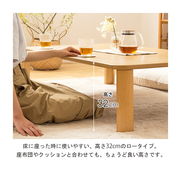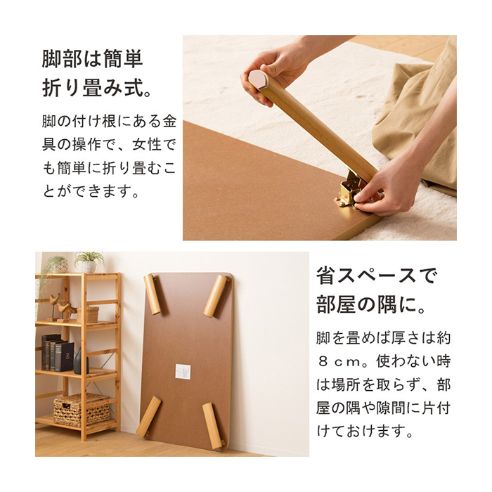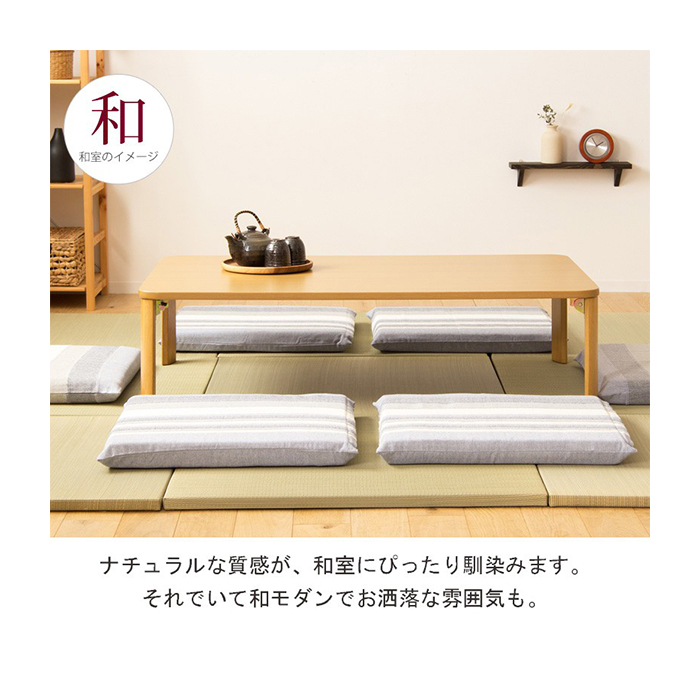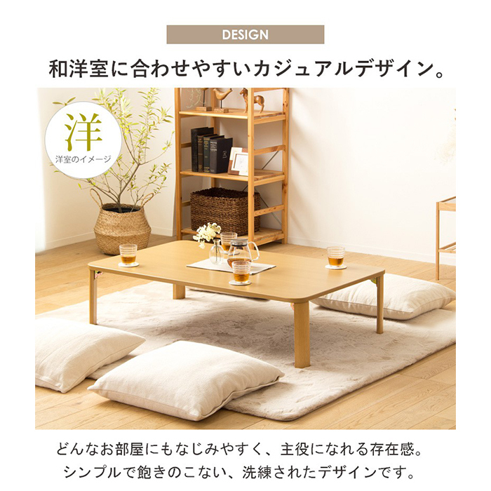 シンプルなデザインとぬくもりのある佇まいが、長く愛されロングセラーになっている折りたたみ座卓テーブル。