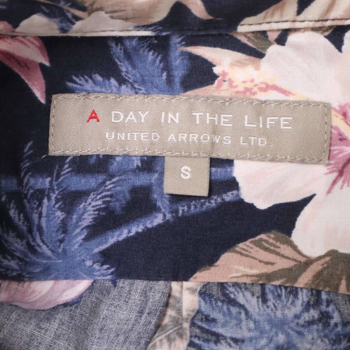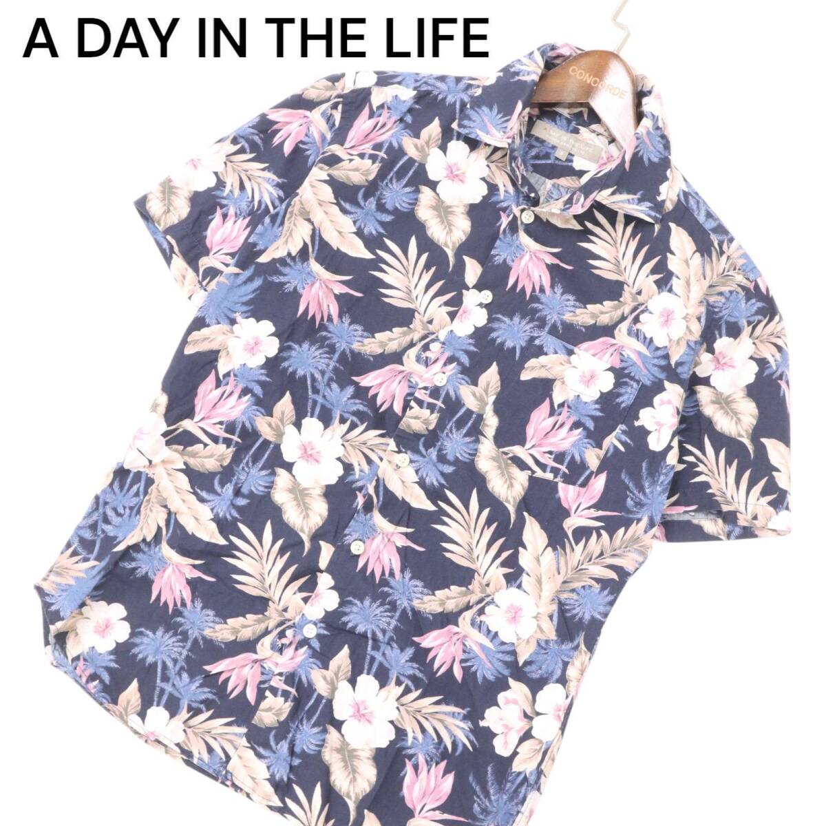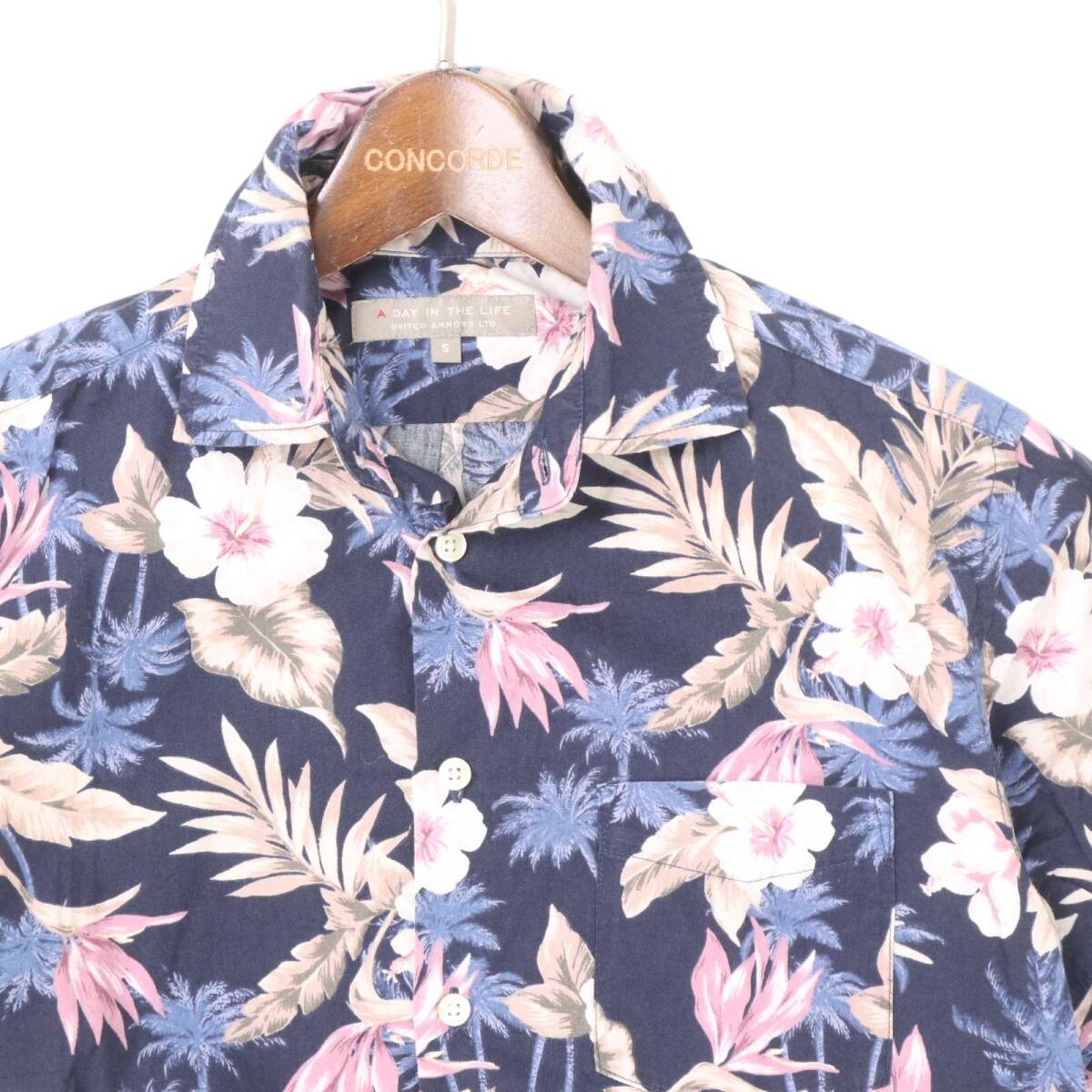 A DAY IN THE LIFE ユナイテッドアローズ 春夏★ トロピカル 花柄 フラワー 総柄 半袖 アロハ シャツ Sz.S メンズ ネイビー