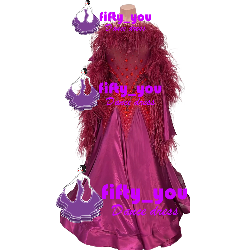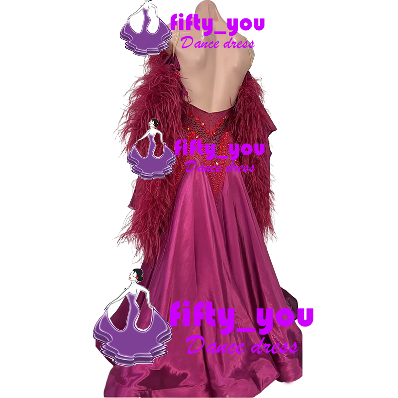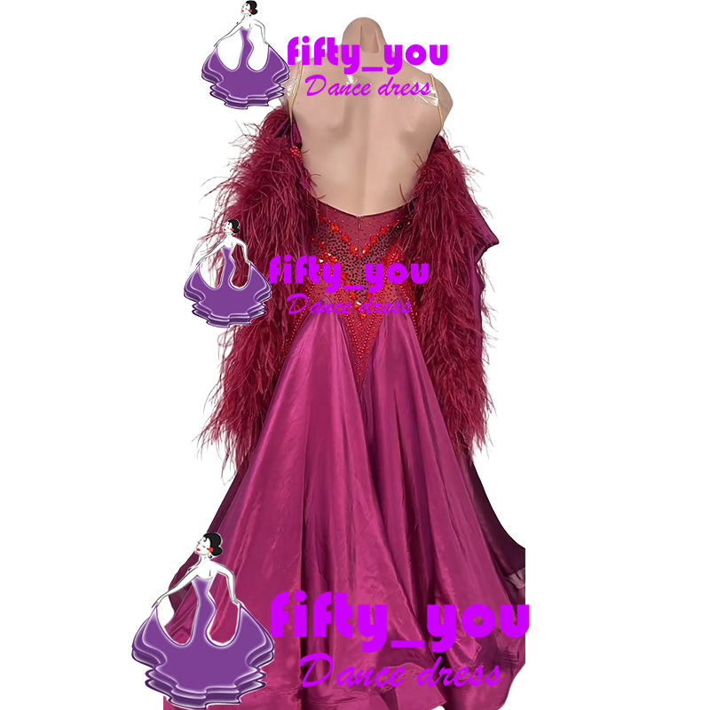 新品fifty_youセミオーダードレス レディース社交ダンス衣装  モダン・スタンダードドレス競技発表パーティドレス  上品1着 羽付き