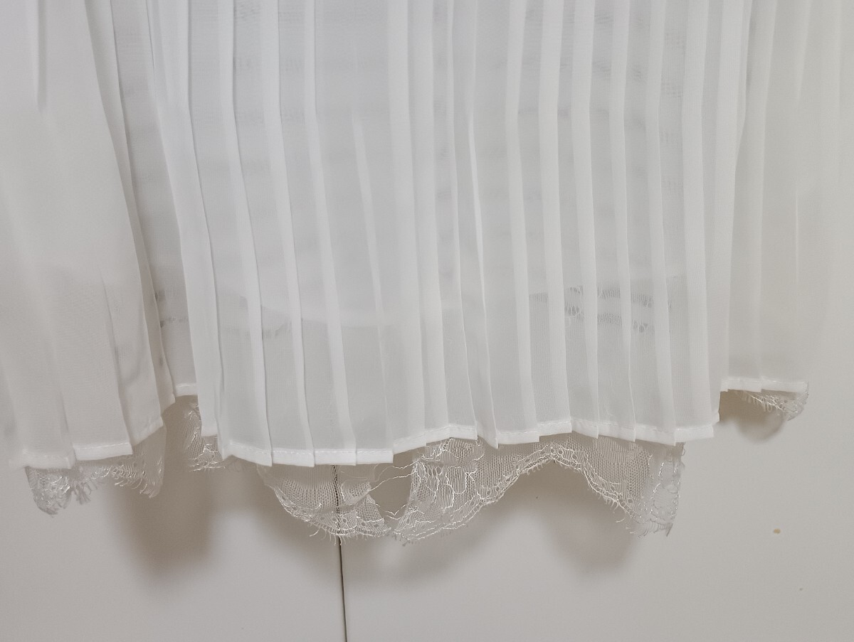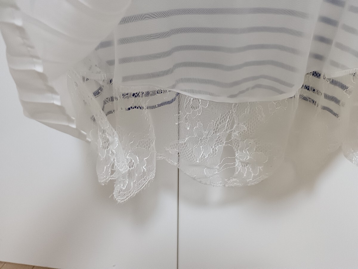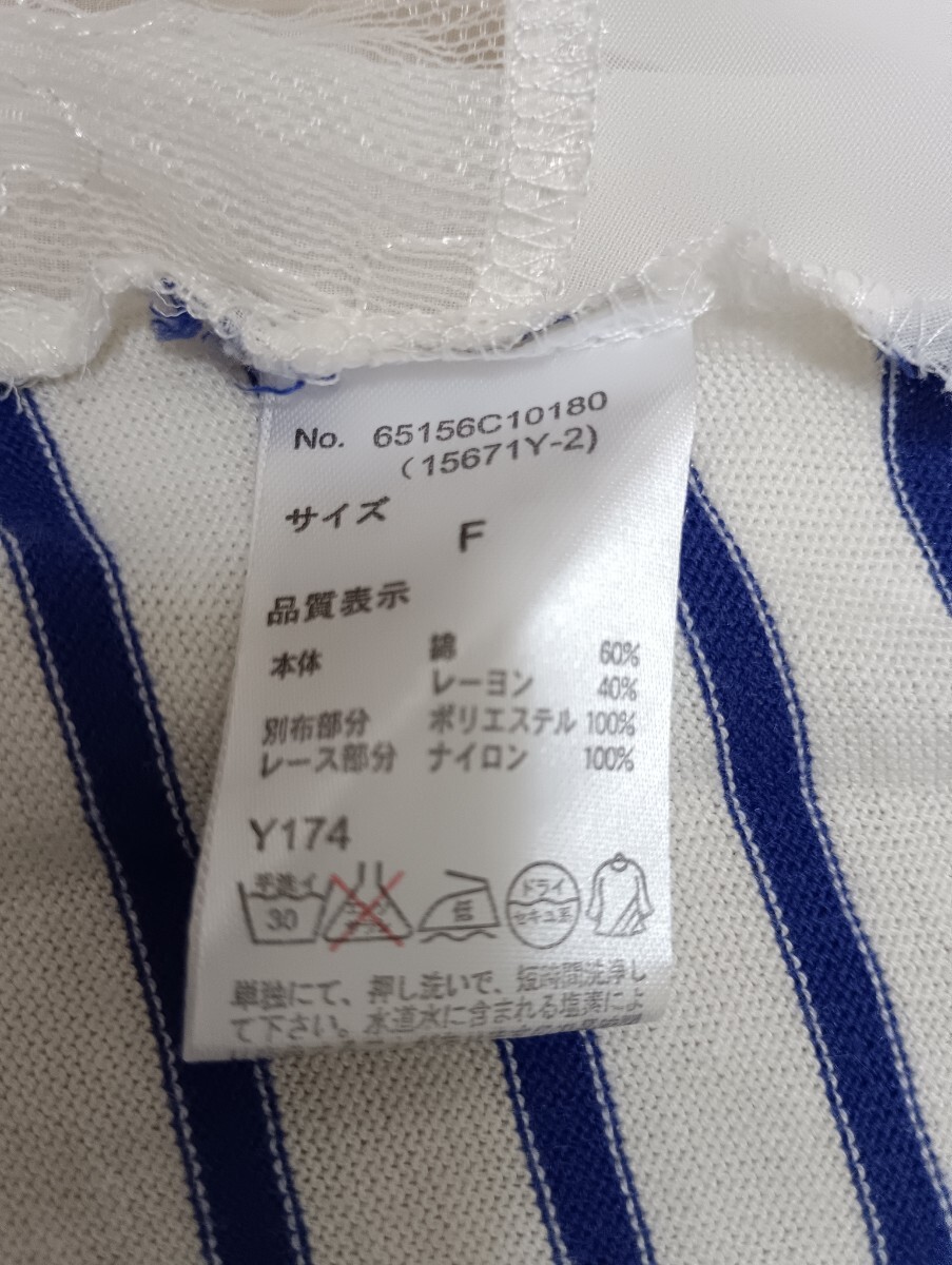 LHELBIE ブルー&白色ボーダーのトップスです。後ろはレース2枚ドッキングしてます。フリーサイズです。サイズは着丈約54cm、身幅約45cmです。