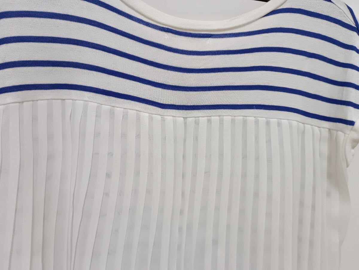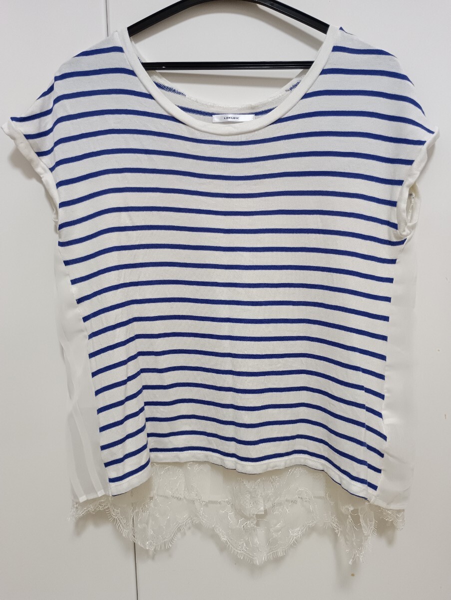 ☆最終値下げ☆LHELBIE☆ブルー&白色ボーダー☆トップス☆ドッキング レース☆フリーサイズ☆レルビエ☆