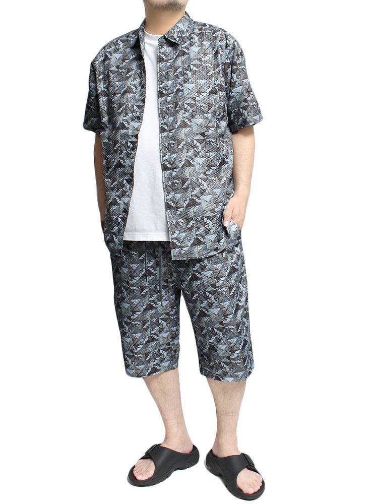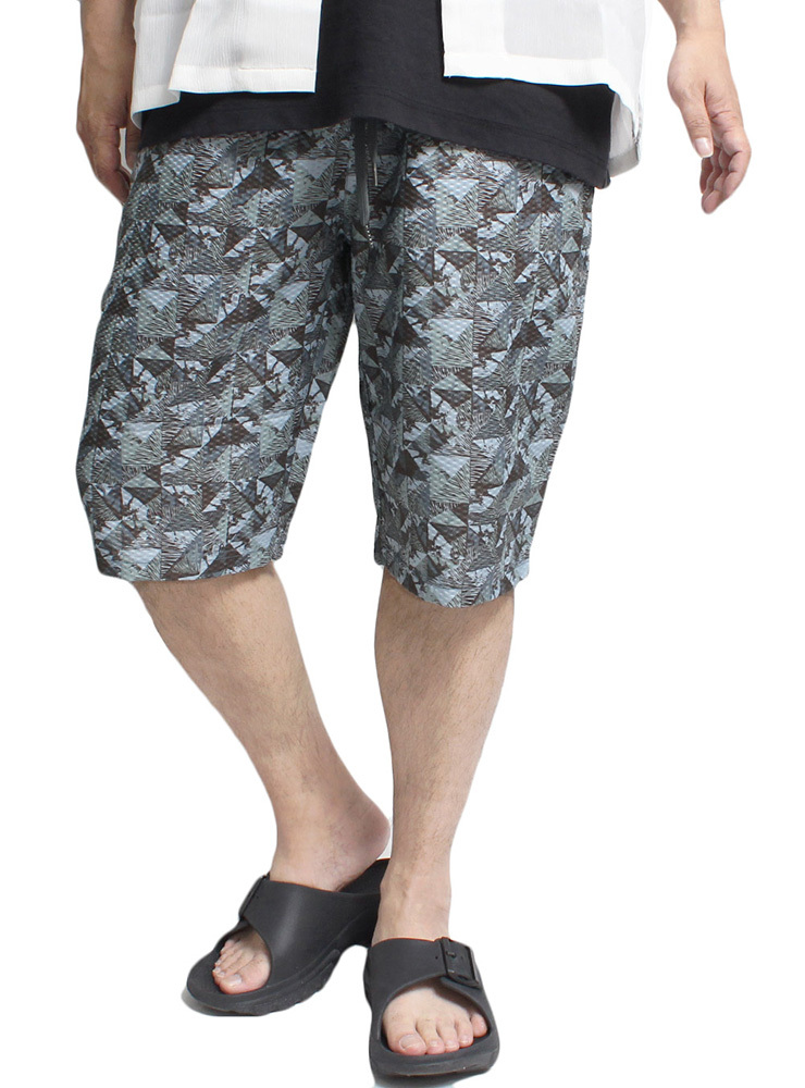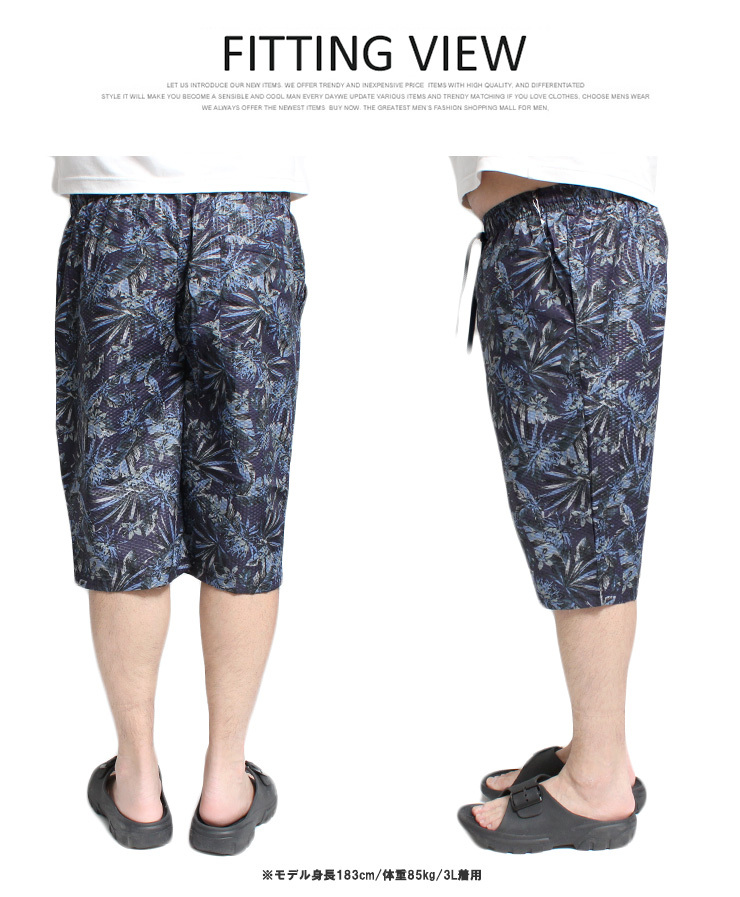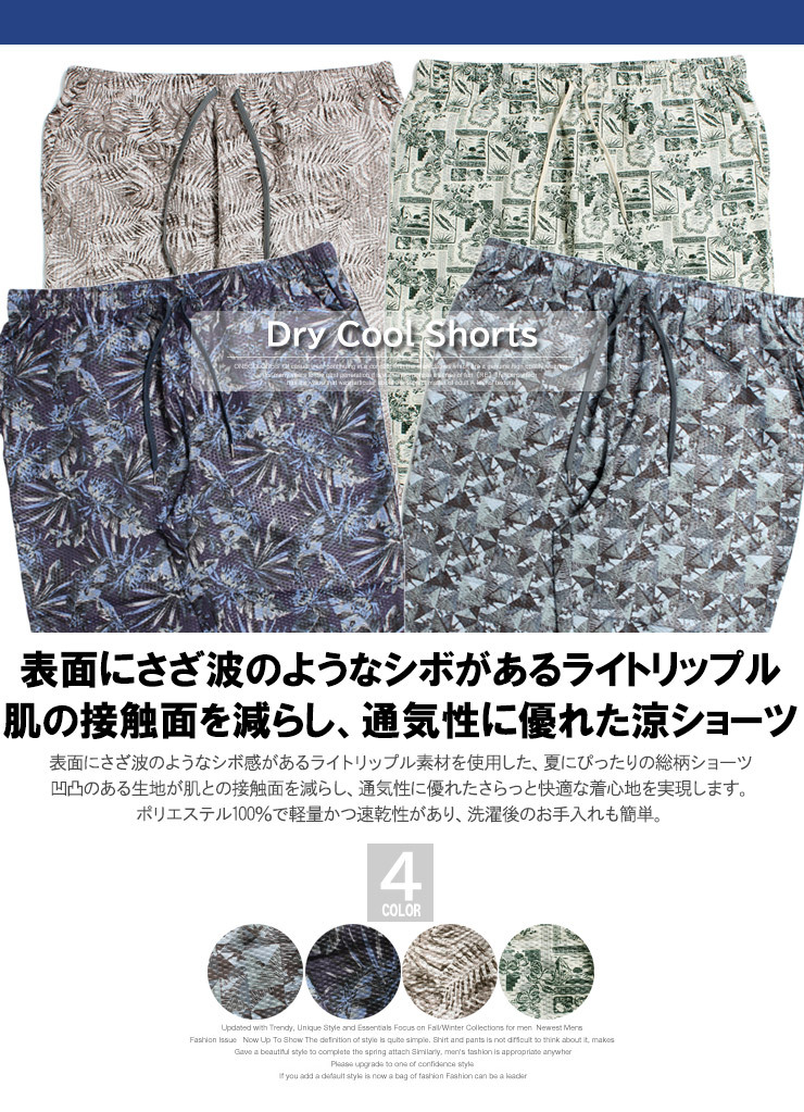 商品名 | 【新品】 4L ブルー ショートパンツ メンズ 大きいサイズ 吸汗速乾 ドライ ライトリップル素材 総柄 プリント ハーフパンツ |