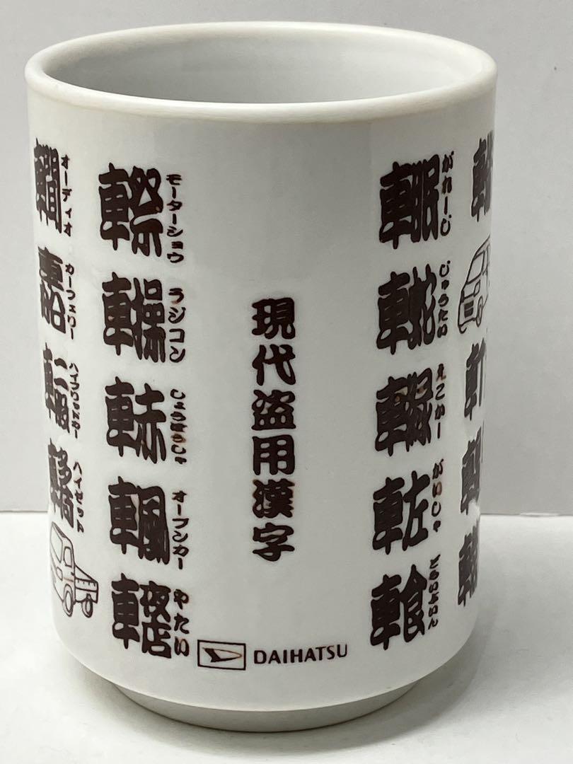 ダイハツ 湯呑茶碗 ノベルティ 非売品ダイハツのノベルティとして配布された「湯飲み茶わん」です。面白い漢字が並んでいて、眺めているだけでも楽しくなります。食卓に潤いを。未使用品ですが、箱などはございません。写真のものがすべてです。新品、未使用
