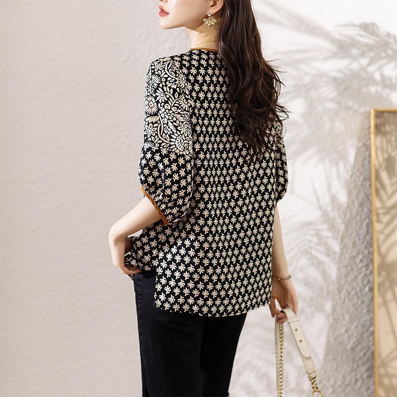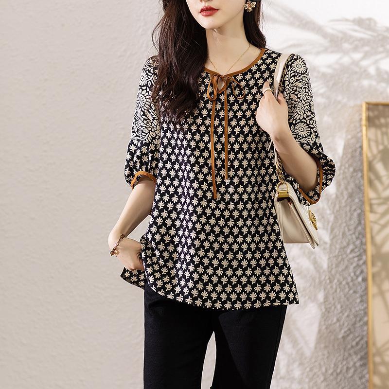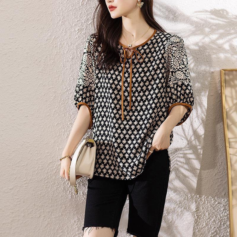 大きいサイズ トップス レディース カジュアル 総柄 春夏 半袖 新品 秋 レースアップ