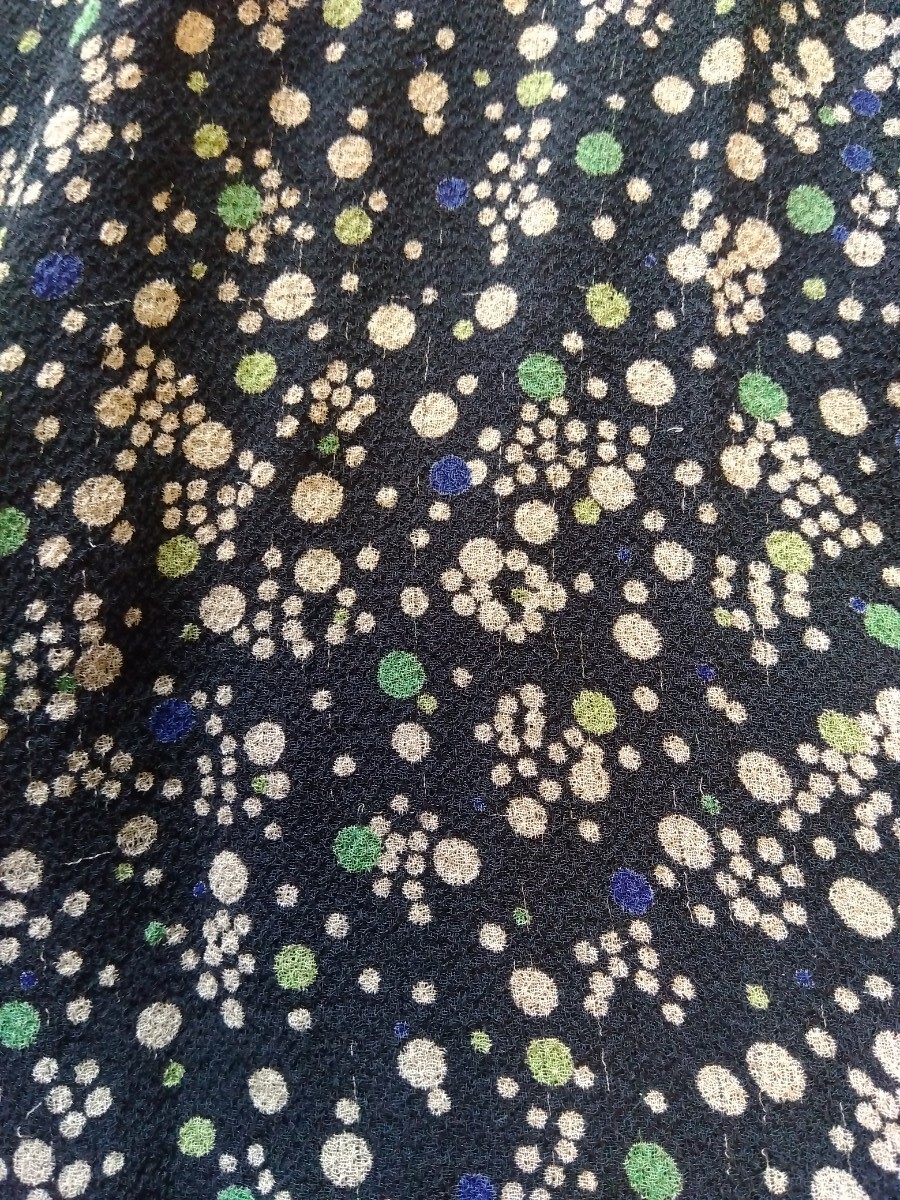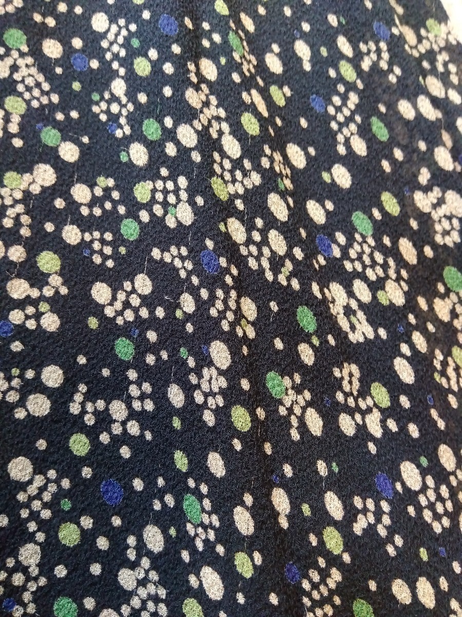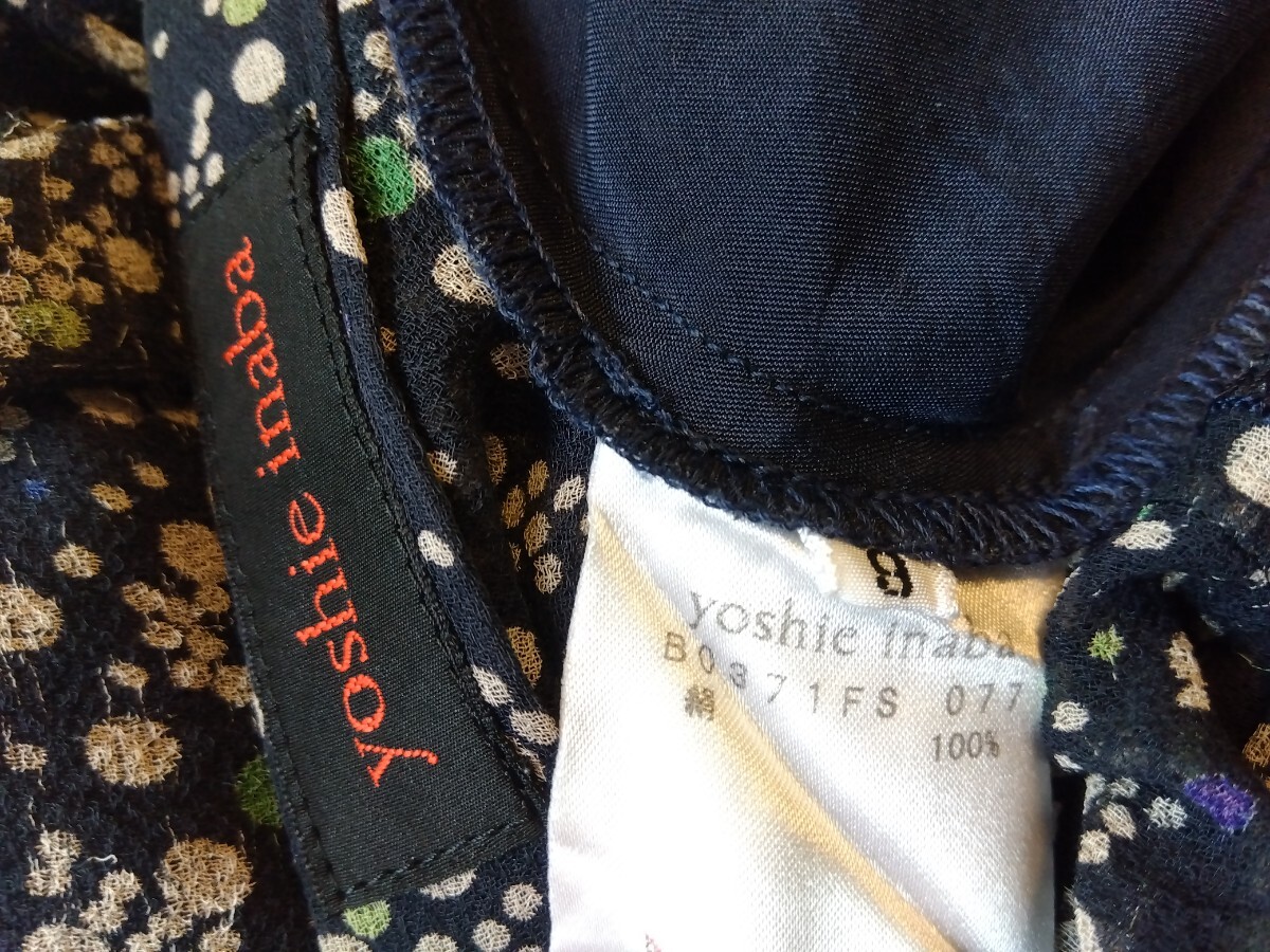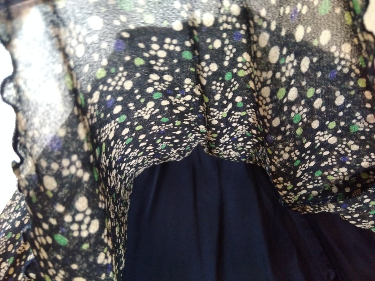 訳ありなのは、最後の写真の通り、柄物なので見えにくいですが、ネイビーの生地の細かな白い糸の糸引き跡が全体的にありますので神経質な方はお控え下さい。