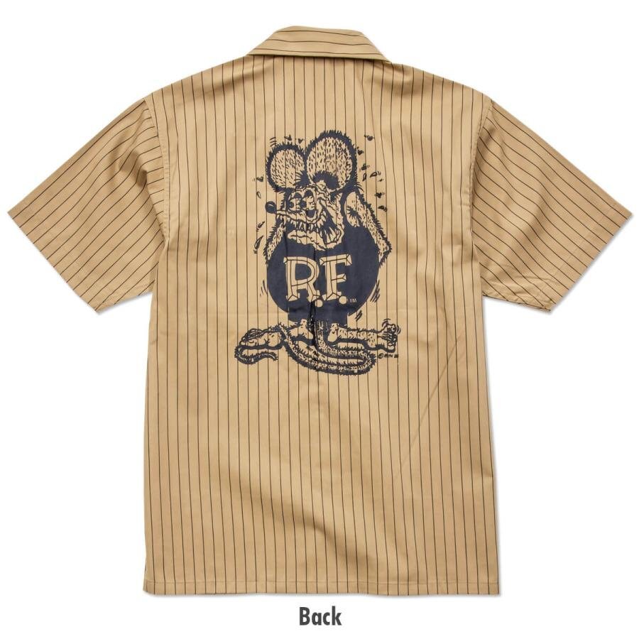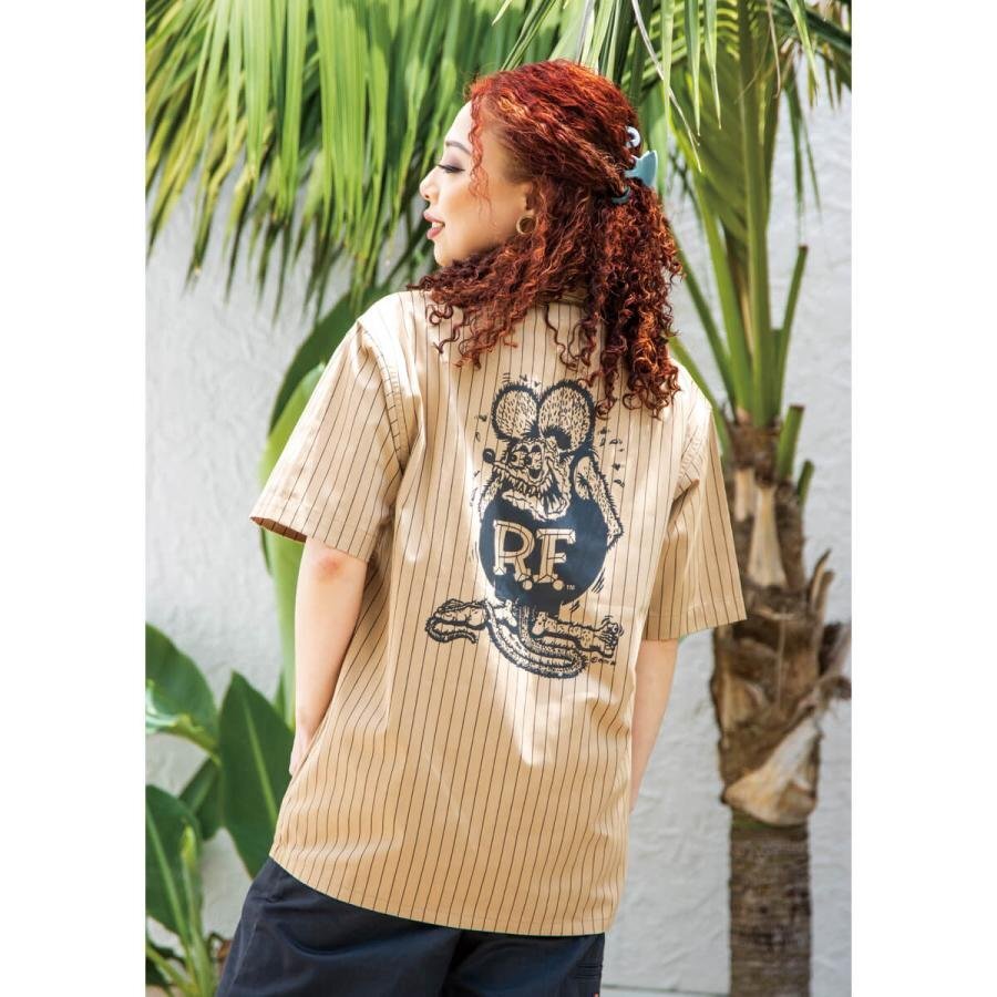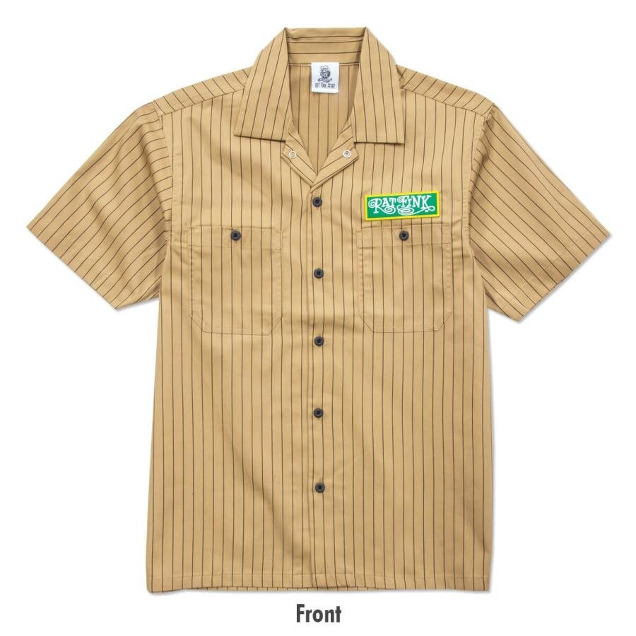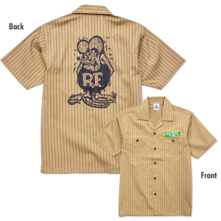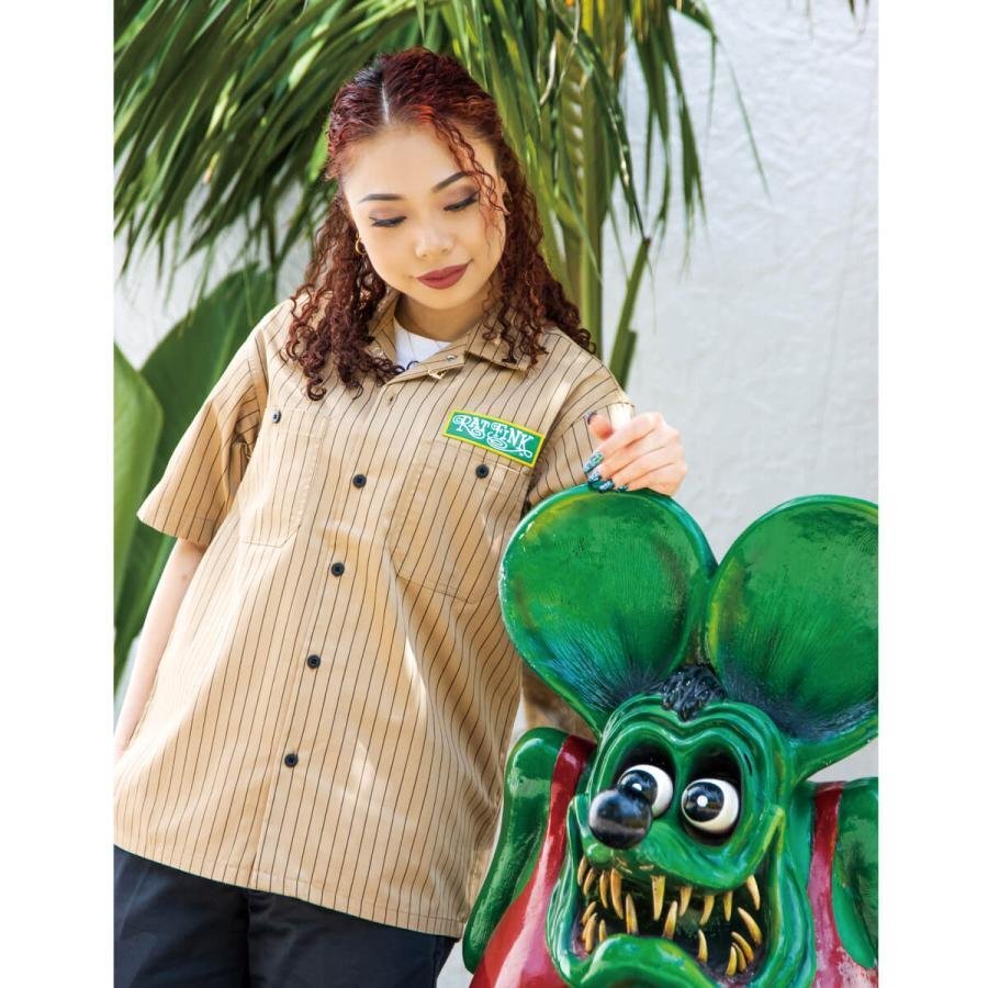 | Rat Fink Stripe Short Sleeve Work Shirt ラットフィンク ストライプ ショート スリーブ ワークシャツ ストライプがアクセントに入り、メカニックシャツ・ワークスタイルはもちろん、アメカジテイストなスタイルとしてもばっちりハマる1枚。フロントはシンプルに Rat Fink のパッチが付き、バックは大胆に Standing Rat Fink をプリントしています。 サラッとした涼しげながらも丈夫な生地で、第一ボタンは片手で簡単に外せるスナップボタン+オープン カラー。両サイドには胸ポケットが付き、左胸ポケットのみ、ペン差し付き。 アメカジライクなストライプ柄に,ワークシャツの基本を押さえたベースボディ+定番RFグラフィックとパーフェクトな仕様では? サイズ (JP): Model 162cm Size M 素材: ポリエステル 65%、コットン 35% ツイル(T/C) カラー: BE ベージュ 【サイズ(CM)】 Mサイズ:着丈 74 身幅 50 袖丈 22 肩幅 46 郵メール便送料¥250(代引き不可・紛失補償なし) LUCKY13、THRASHER、Sailor Jerry等~アメキャラ・企業ロゴ等ライセンスTシャツ、RATFINK関連品、バンドTシャツ等取り扱っております。 ** 他にも色々出品中です。 CWKTW CWLPPC IWTS IWLT | |||||||