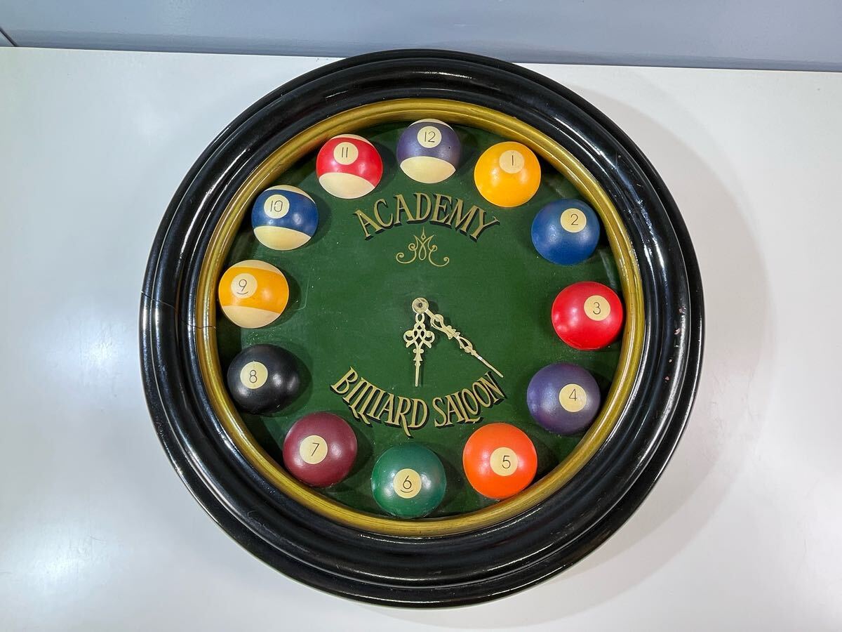 ★動作確認済み ビリヤード 掛け時計 ACADEMY BILLIARD SALON ボール 12球 アナログ 時計 壁掛け時計 インテリア 現状品 中古品 ●管理N803