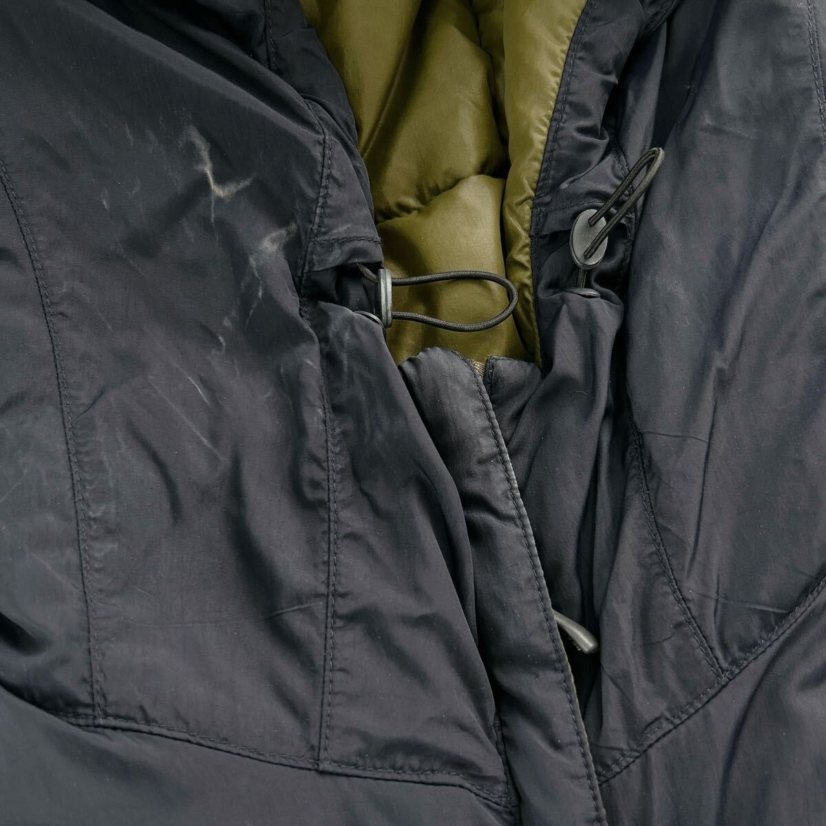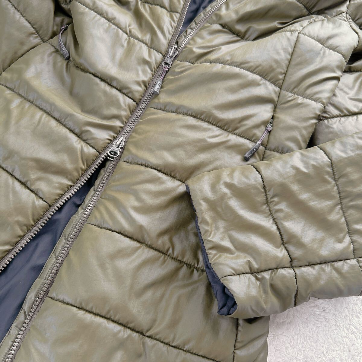 ご覧いただきありがとうございます。 【ルネートル】では、古着を多数出品中です。ぜひご覧ください 商品名: リバーシブルコート カラー: カーキ×ネイビー サイズ: XL 特徴: キルトがある表面とシンプルな表情の裏面とで、二通りのデザインが楽しめるリバーシブル仕様のコートです。 優れた防風性と撥水性を備えたシェル素材に、保温性が高く、メンテナンスが容易なエクセロフトを三枚差し構造で封入。 光沢を抑えた落ち着いた雰囲気で、ウエストを程よくシェイプした女性らしいシルエットに仕上げています。 状態: 中古品 紺色側の襟元とフード部分に白っぽい汚れが数ヶ所ございます。 (画像をご確認ください) その他、目立った傷や汚れ、色褪せ、型崩れなどは見受けられません。 着用には大きな支障はありませんが、状態をご了承の上、ご検討ください。 素材: ナイロン 中綿ポリエステル | |||