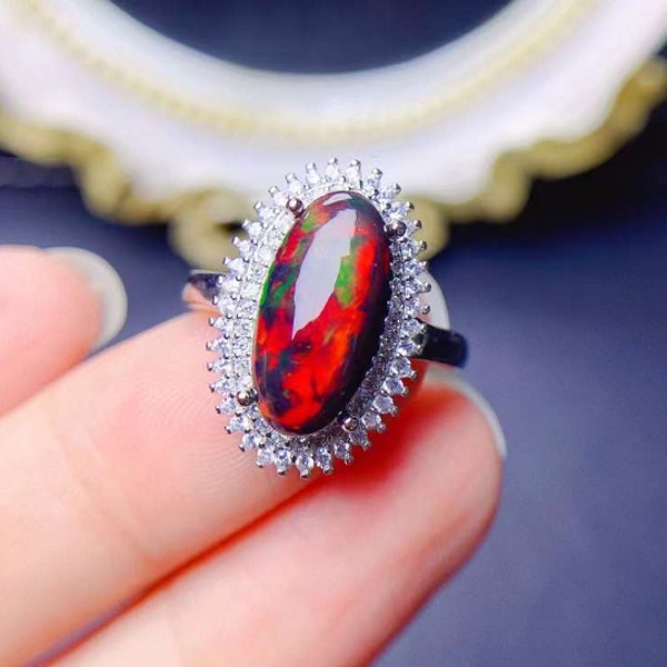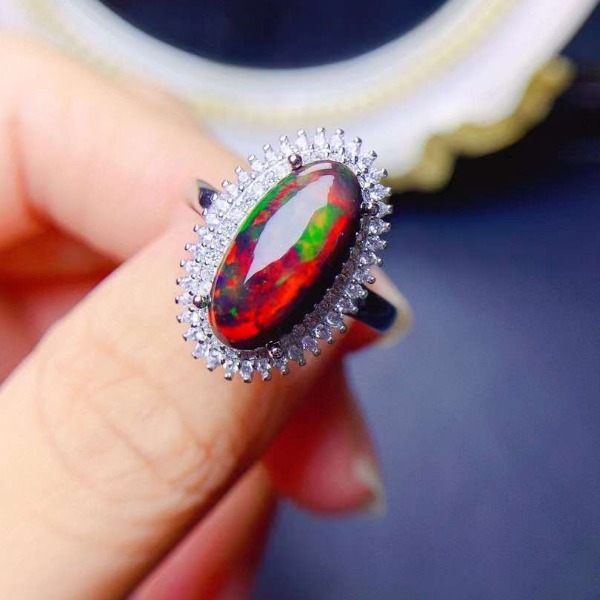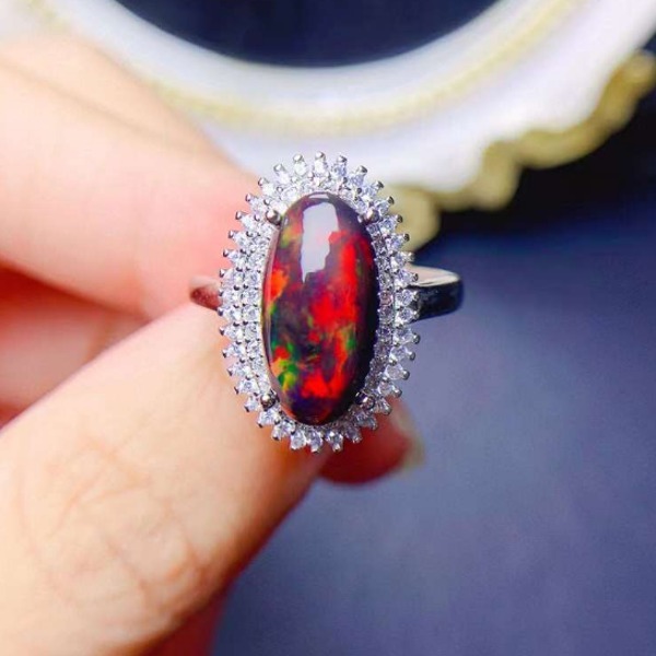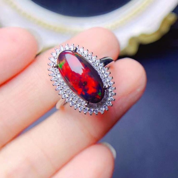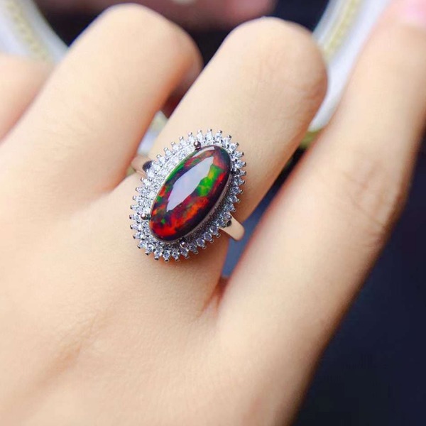 天然ブラックオパールリング、7X14mm、925シルバー、パーティー、18kゴールドメッキ、宝石宝飾品