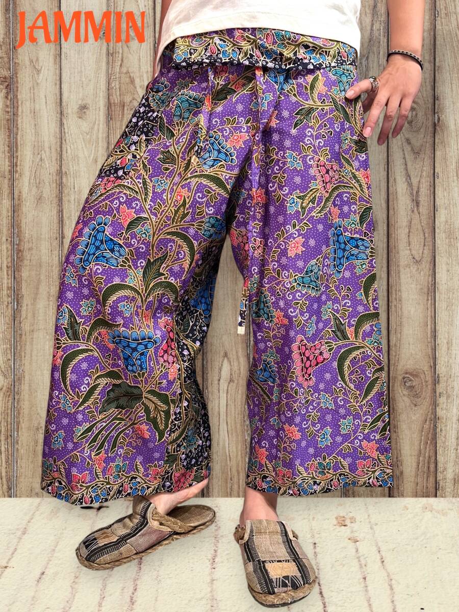 タイパンツ/アジアンパンツ/エスニック/アジアン/ヒッピー/サイケ/袴パンツ/はかまパンツ/ゆったり/大きいサイズ/ヨガ/ヨガパンツ/フィッシャーマンパンツ/アジアン部屋着/男女兼用/タイマッサージ/タイマッサージパンツ/バティック/花柄/和柄