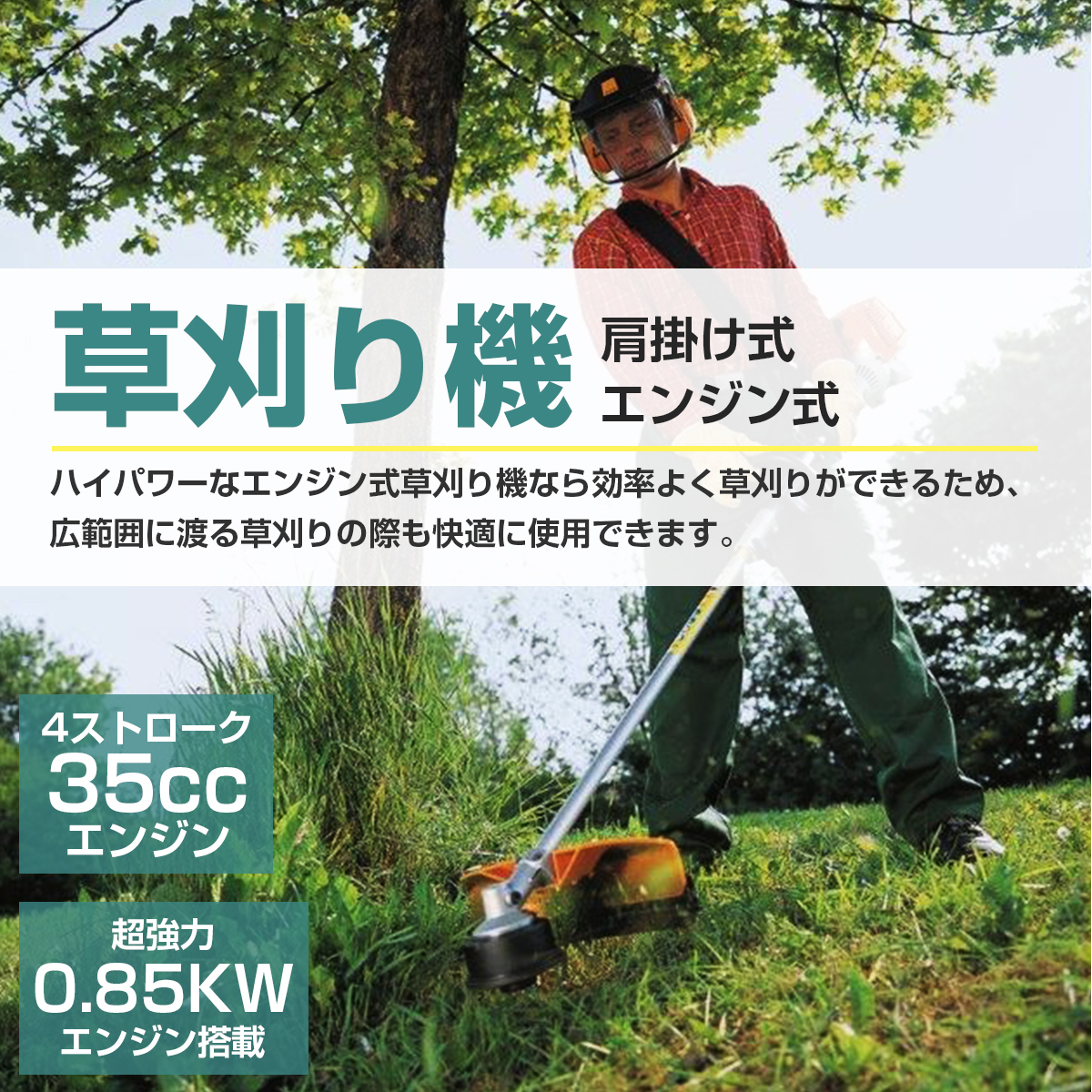 4スト エンジン 草刈り機 芝刈り機 肩掛け式 チップソー付 4サイクル 4ストローク ガソリン 燃料 除草 草刈り 35cc 0.85KW