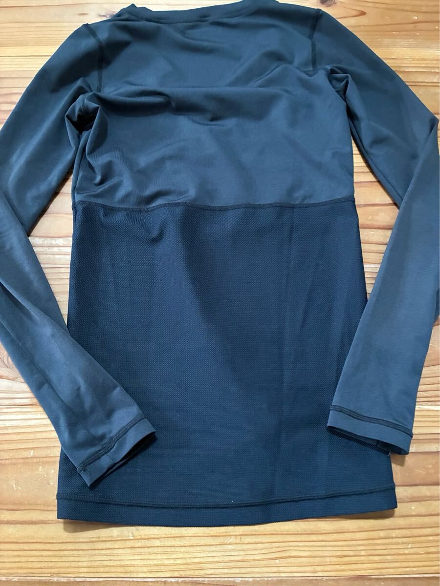 半分メッシュ素材になっていて、お袖にロゴも入ってますので重ね着に最適です。