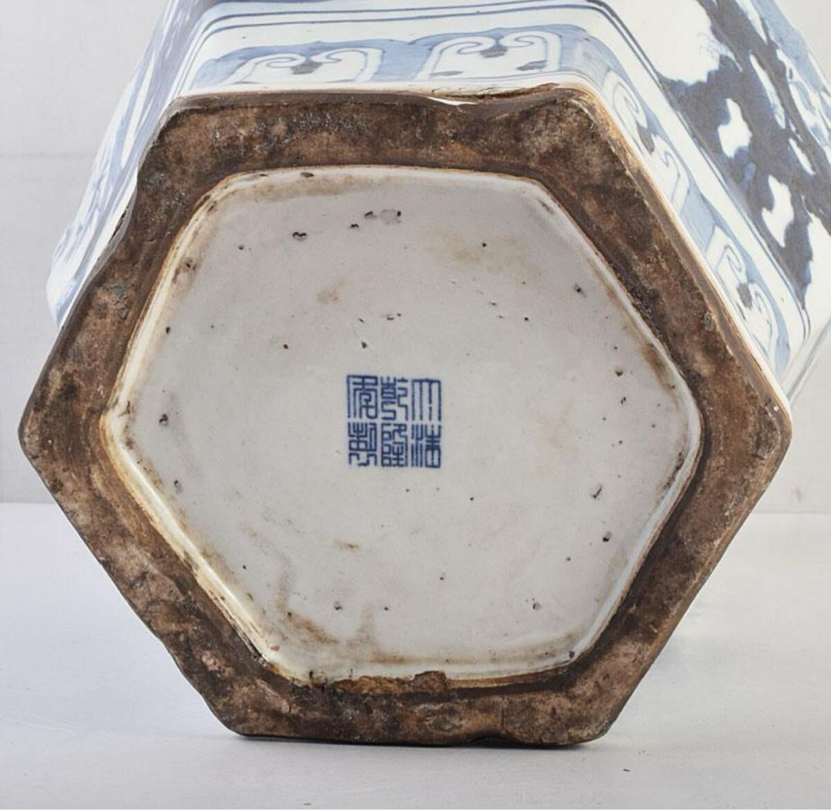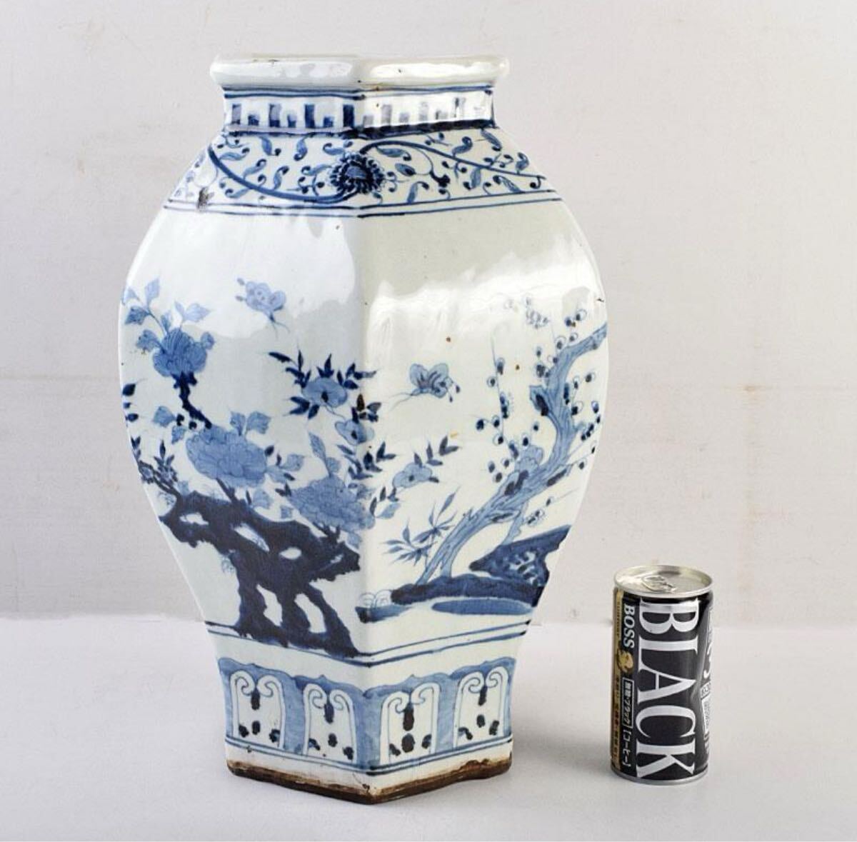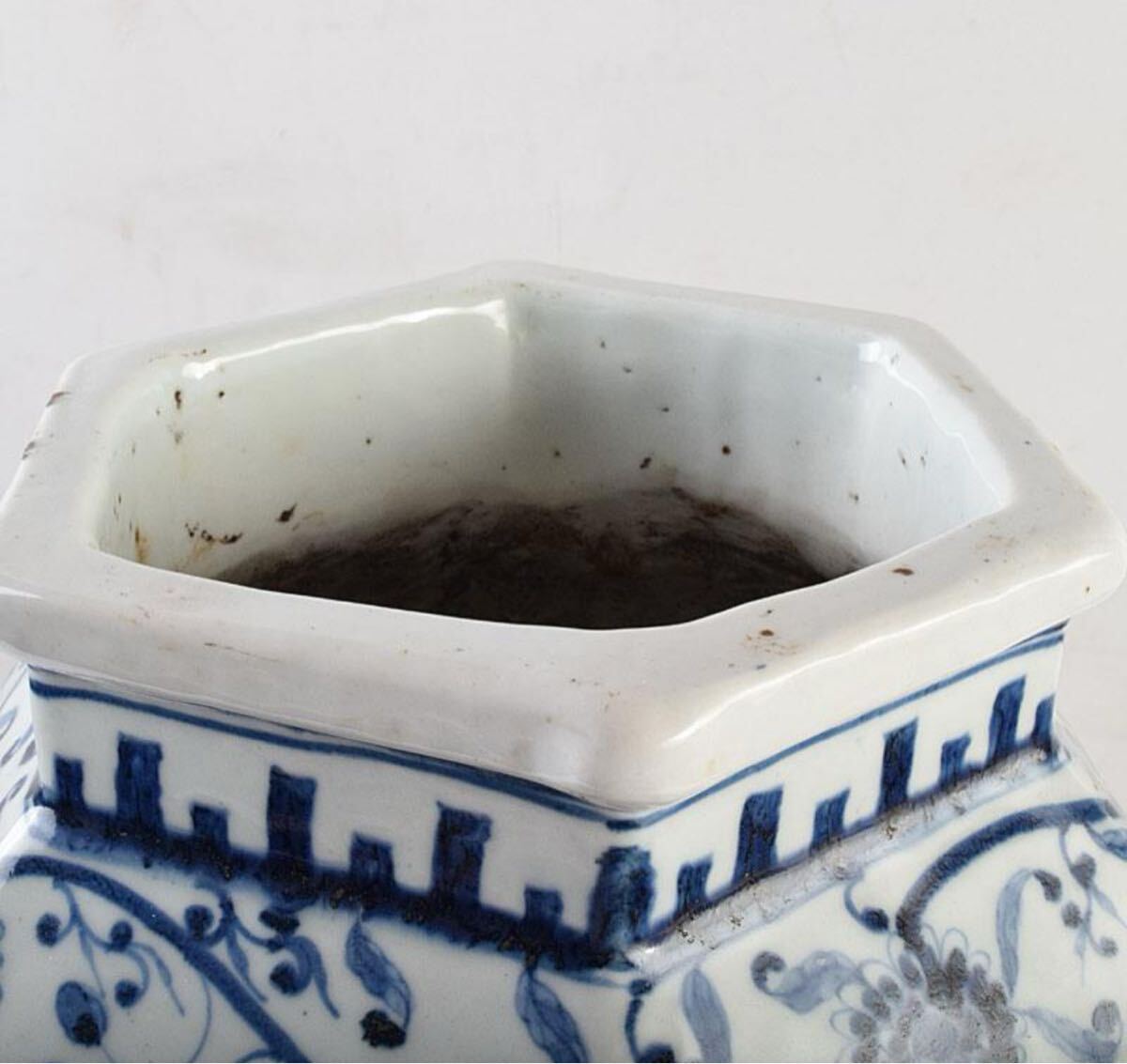 中国美術 染付 花瓶 骨董品 壷 古美術 青花 時代 時代品 国 大清乾隆年製 青花花文 六角大瓶 花瓶 壺