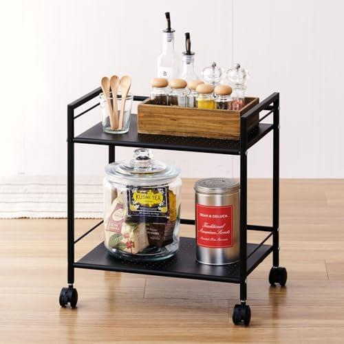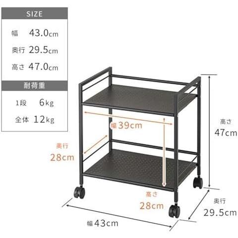 ブラック_2段 ドウシシャ カラーボックスサイズで使いやすく鉄製パンチングがお手入れ簡単 キッチンワゴン 2段 ブラック GC-P46BK 幅43×奥