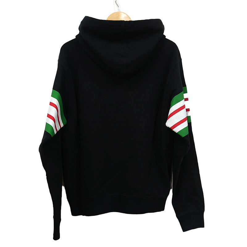 ・裏起毛なし。ホワイト×グリーン×レッドのプリントが印象的なパーカーです。全体的に多少の使用感がございますが、使用時にはそれほど気にならない程度です。