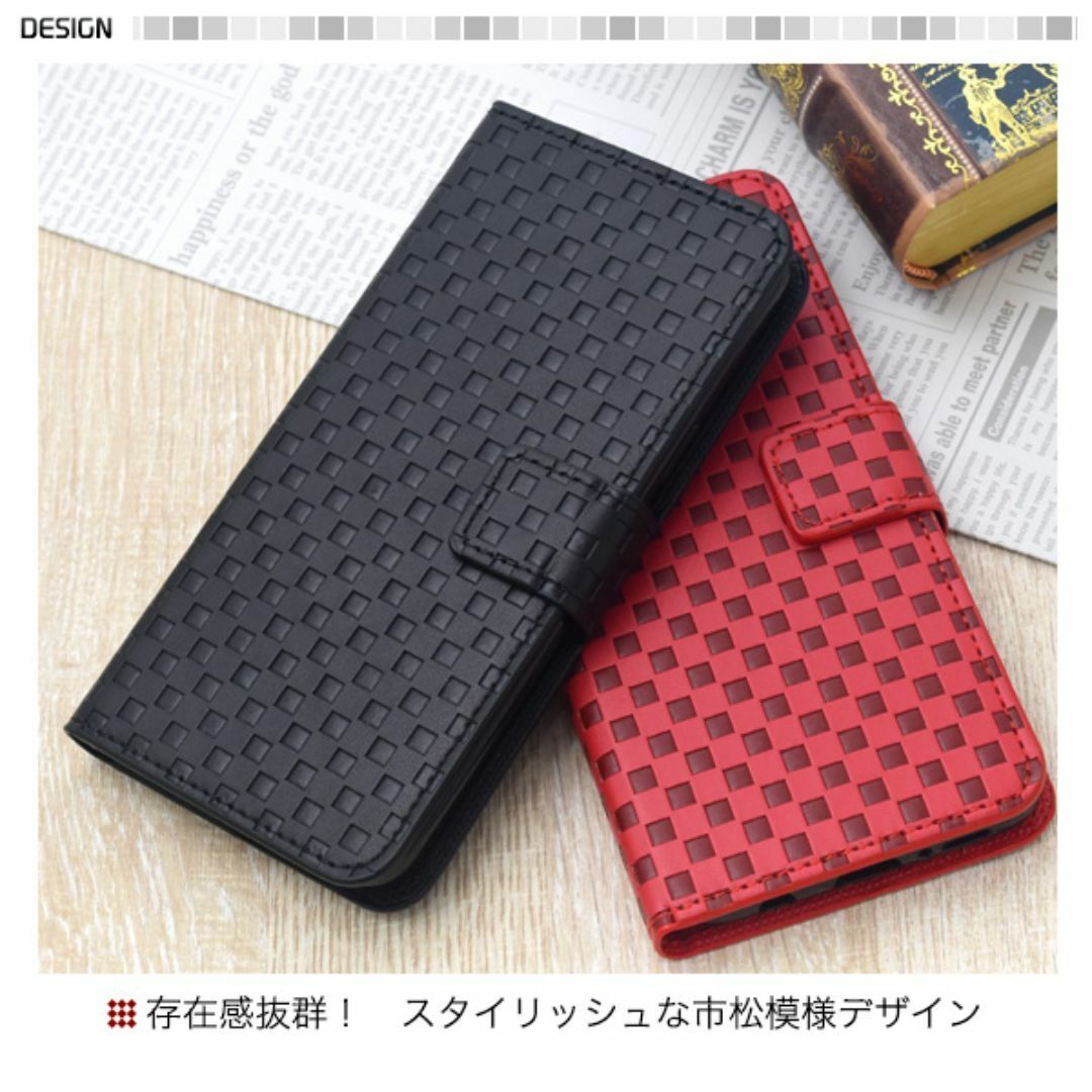 存在感抜群!市松模様レザーデザインの手帳型ケース。