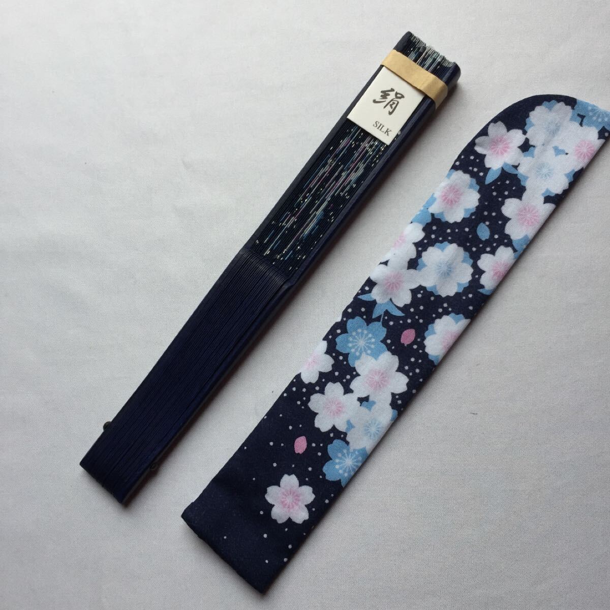 ■シルク100%のおしゃれな扇子に同じ柄の扇子袋がセットされ、