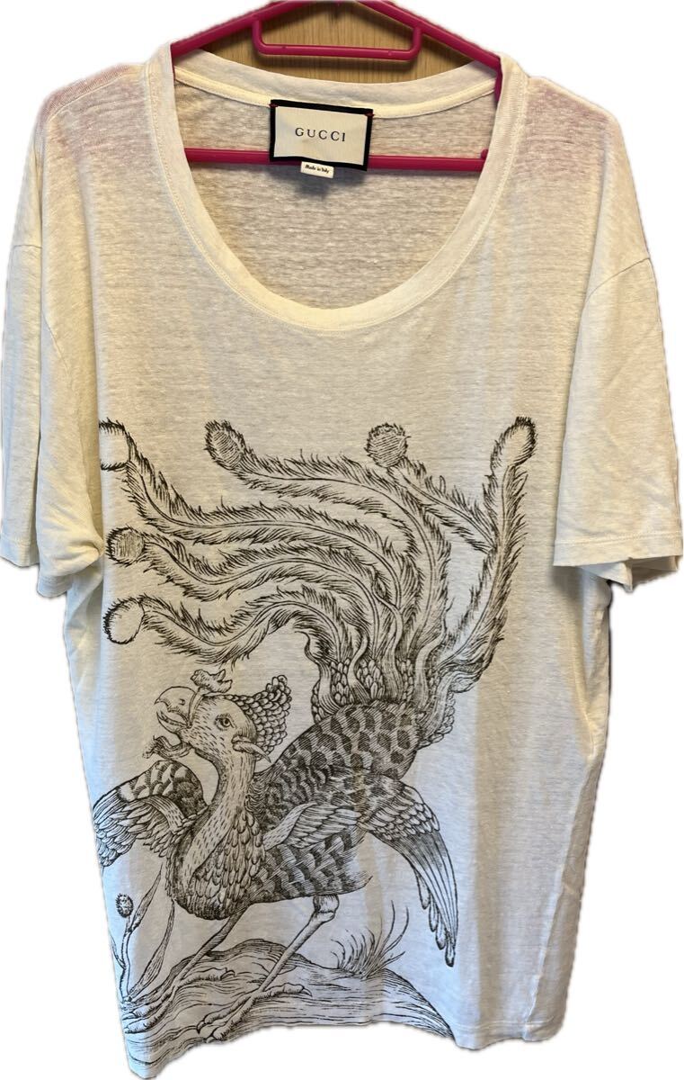 正規 19SS GUCCI フェニックス 不死鳥 リネン クルーネック Tシャツ 白 M
