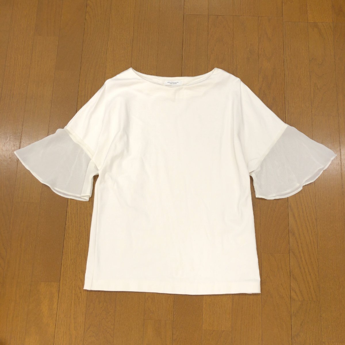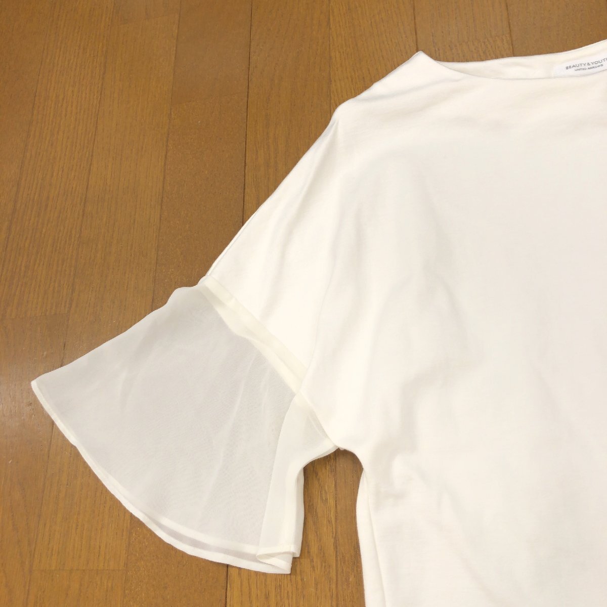 B&Y UNITED ARROWS ユナイテッドアローズ ドロップショルダー ドッキング ゆったり カットソー F 白 ホワイト 日本製 シアースリーブ 婦人