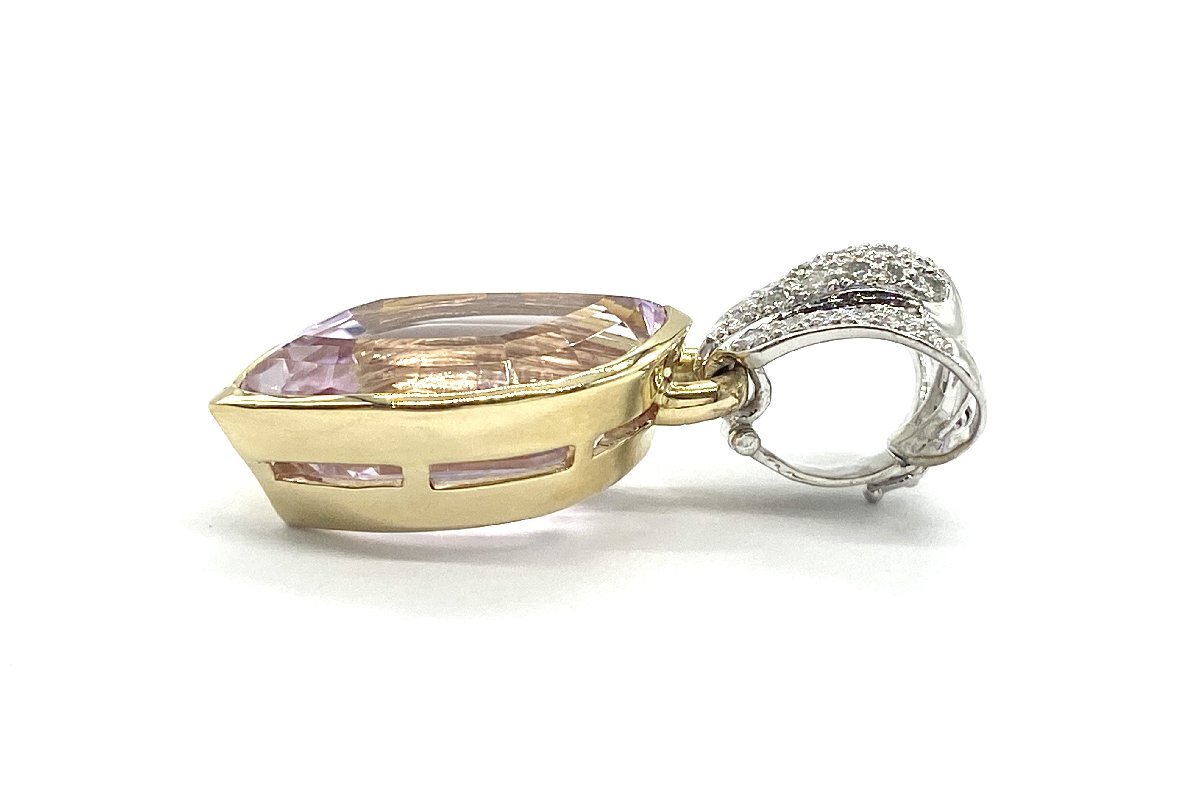 解説 | モーヴ系ピンクがYGによく映え、優しく華やぐデコルテを演出してくれそうです。開閉式バチカンなので、パールのネックレス(6~7mm珠のパールが最適)や太目オメガのトップにと、アレンジの幅広くご利用いただけます。 |