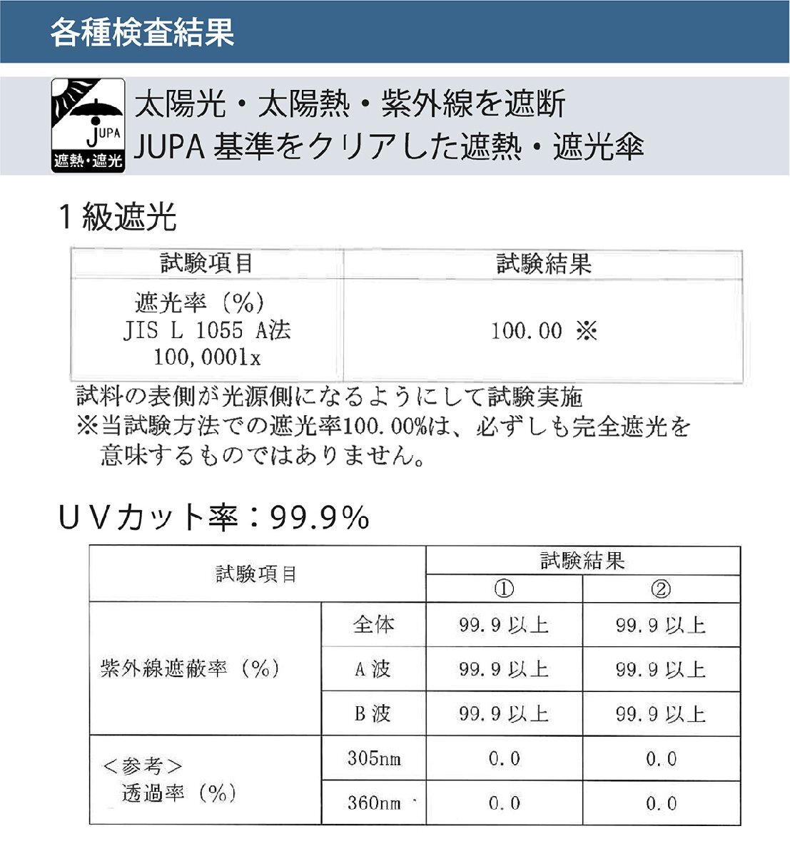 遮光率100%、UVカット率100%、遮熱効果のある機能性生地を使用。