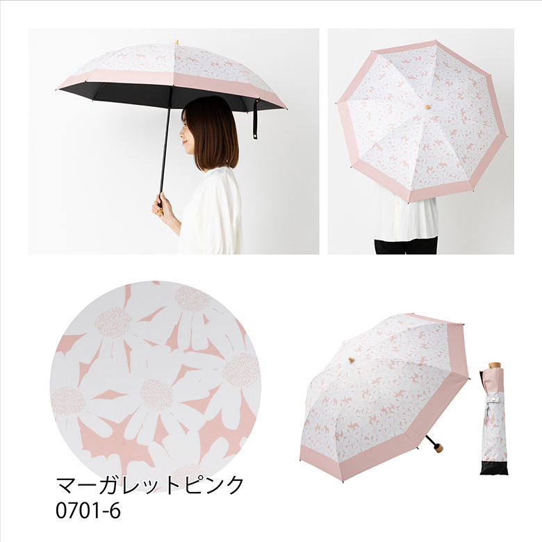 UV遮熱遮光折傘 縁花柄 (晴雨兼用) マーガレット ピンク