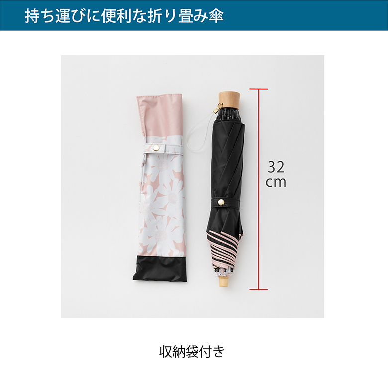 傘生地に花柄模様をあしらったおしゃれな折り畳み日傘。