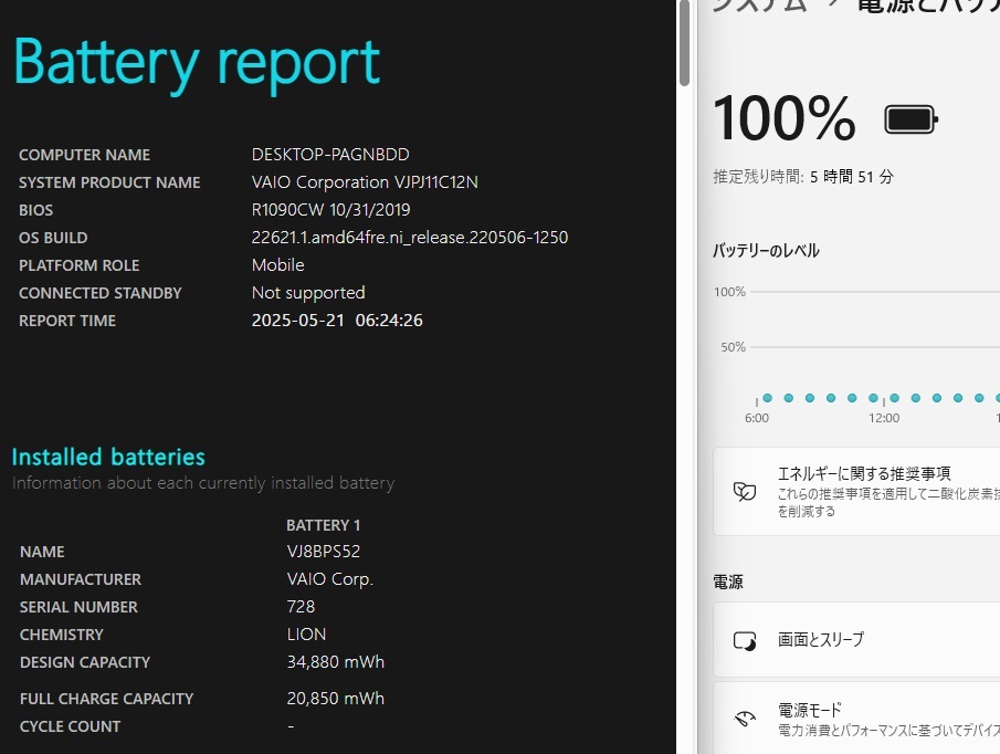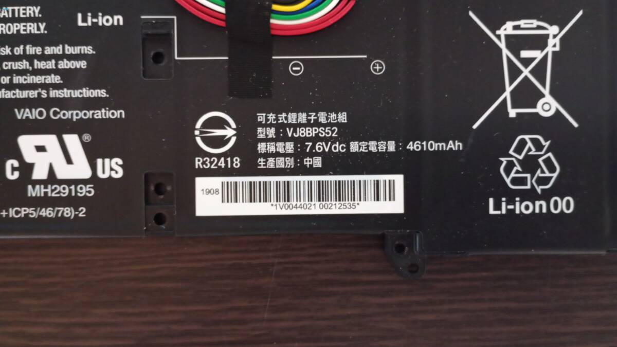部BAT801 バッテリー VAIO VJ8BPS52 残量59%