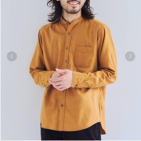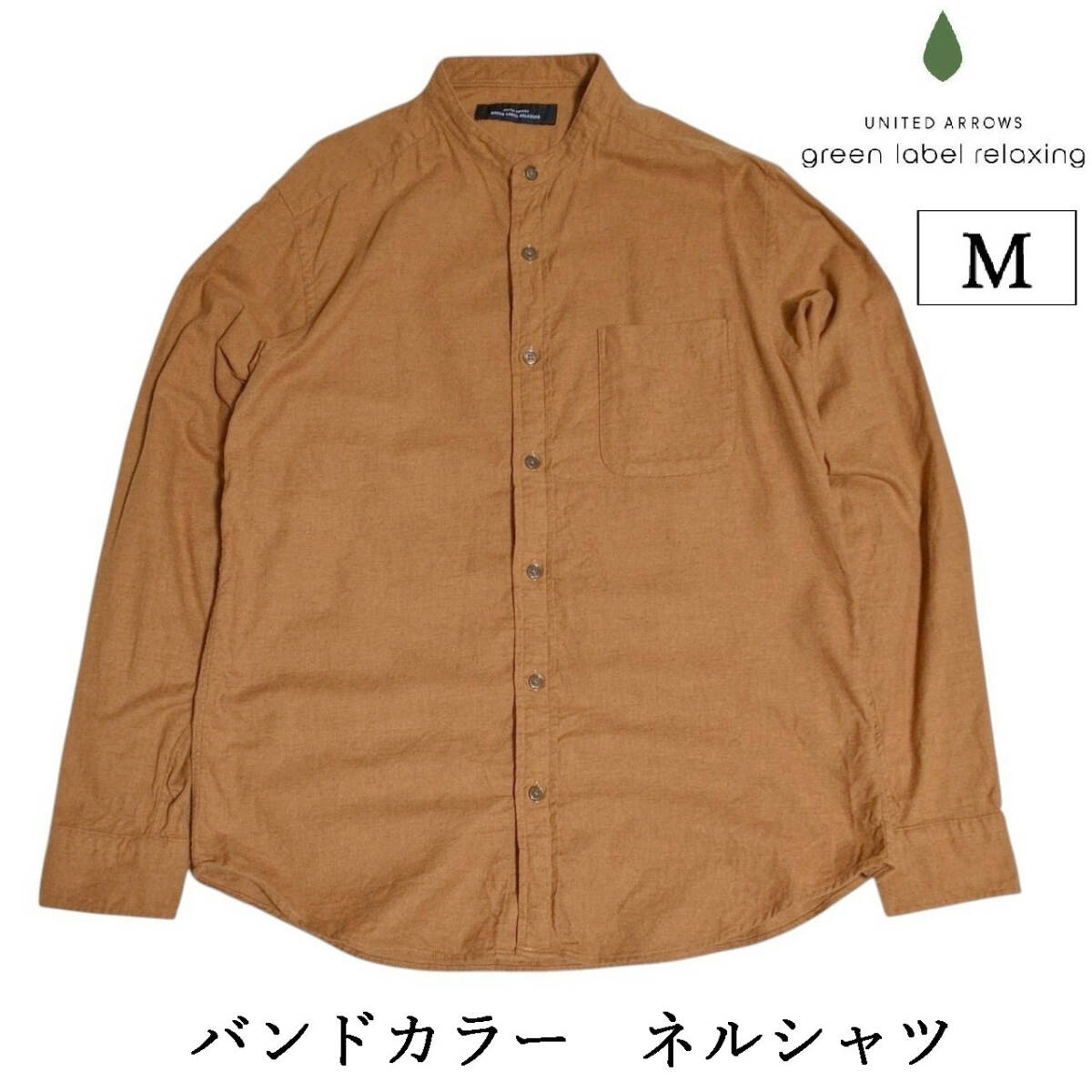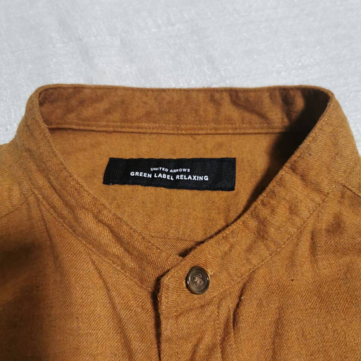 green label relaxing フランネル バンドカラー シャツ バンドカラー ネルシャツ オレンジ キャメル UNITED ARROWS メンズ M