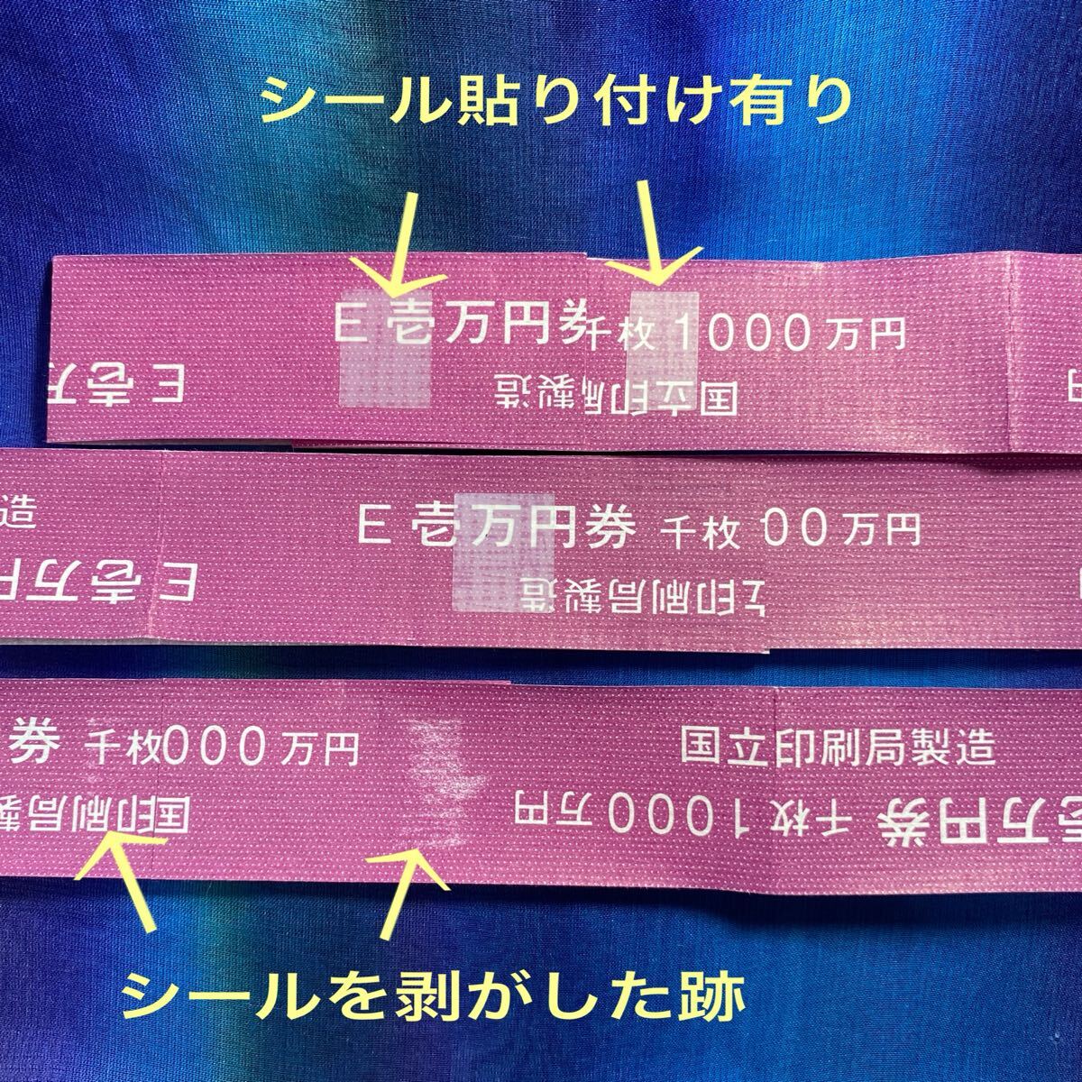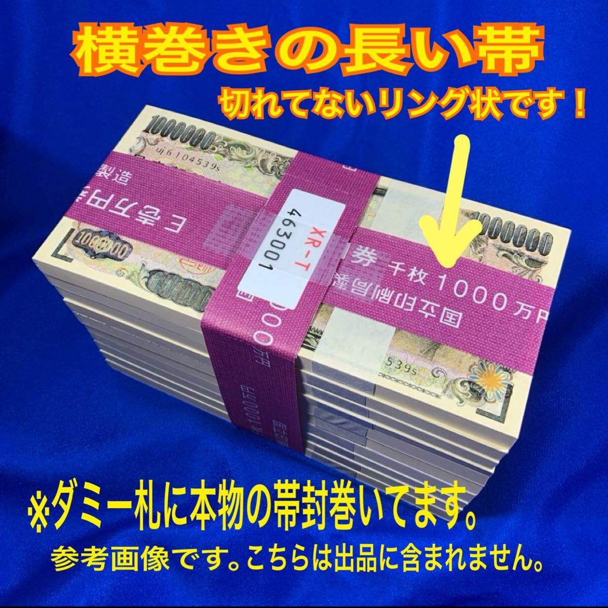 画像には複数枚写っていますが、1000万円の帯封(横巻きの長い帯)1枚の出品です。