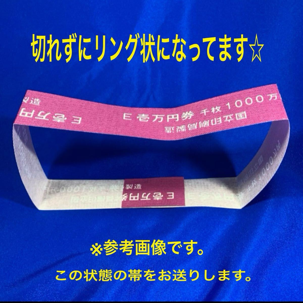 印字、折れシワ等に違いが有りますが、お札に巻かれていた本物の帯をお送り致します。