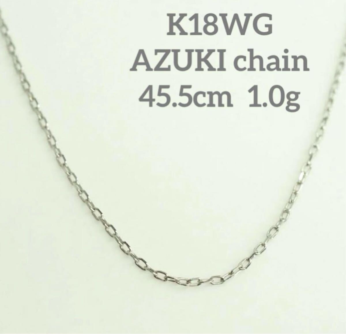 59.K18WG アズキチェーン プレーンネックレス 45cm スライド式アジャスター 長さ調整可能 ivk