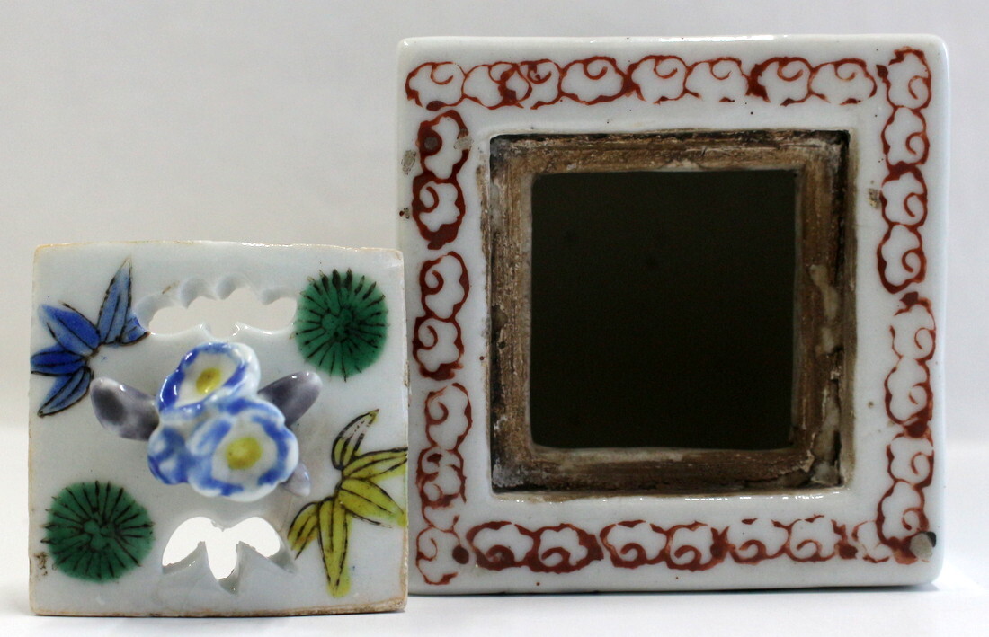 1400/中古・蓋にヒビあり!貫入あり!/角福 四方香炉 四つ足 松竹梅鶴亀文